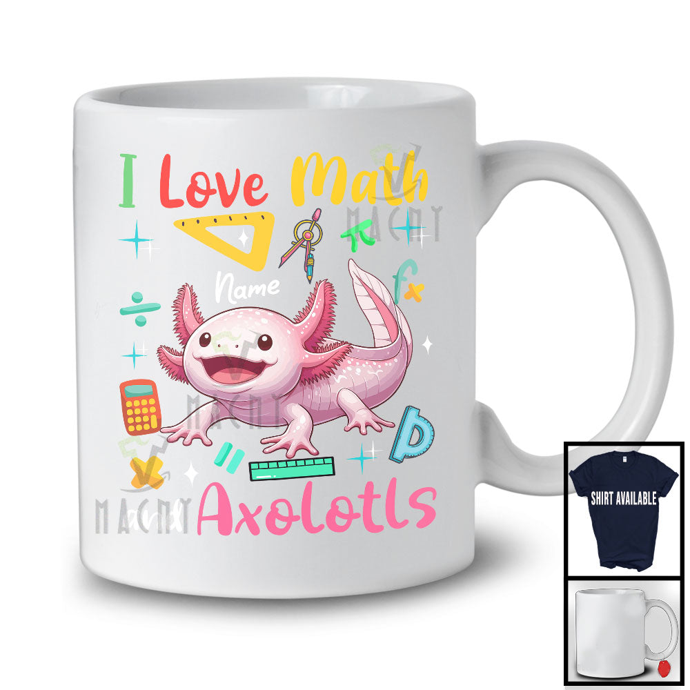 Personalized I Love Math And Axolotls; Lovely Custom Name Axolotls; Teacher Student Team T-Shirt