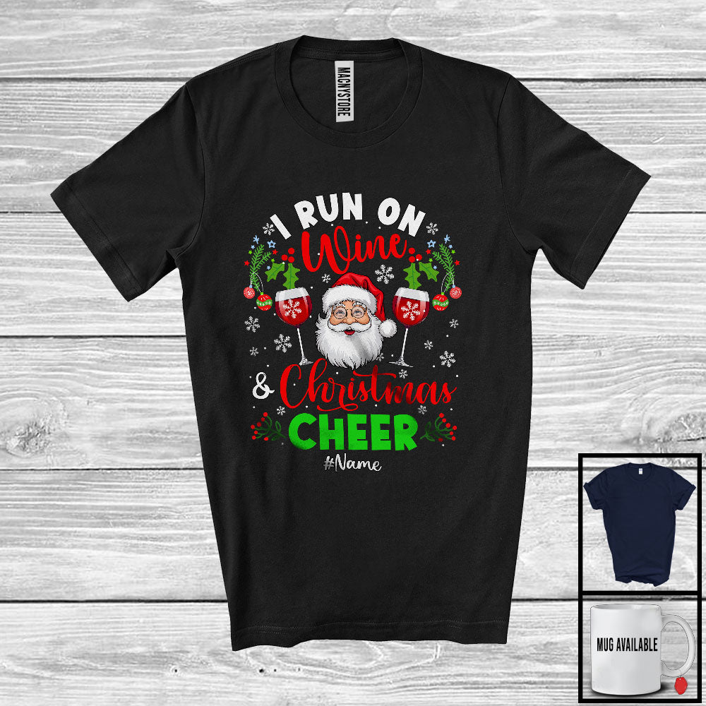 Personalized I Run On Wine And Christmas Cheer; Joyful Custom Name Santa; Drinking T-Shirt