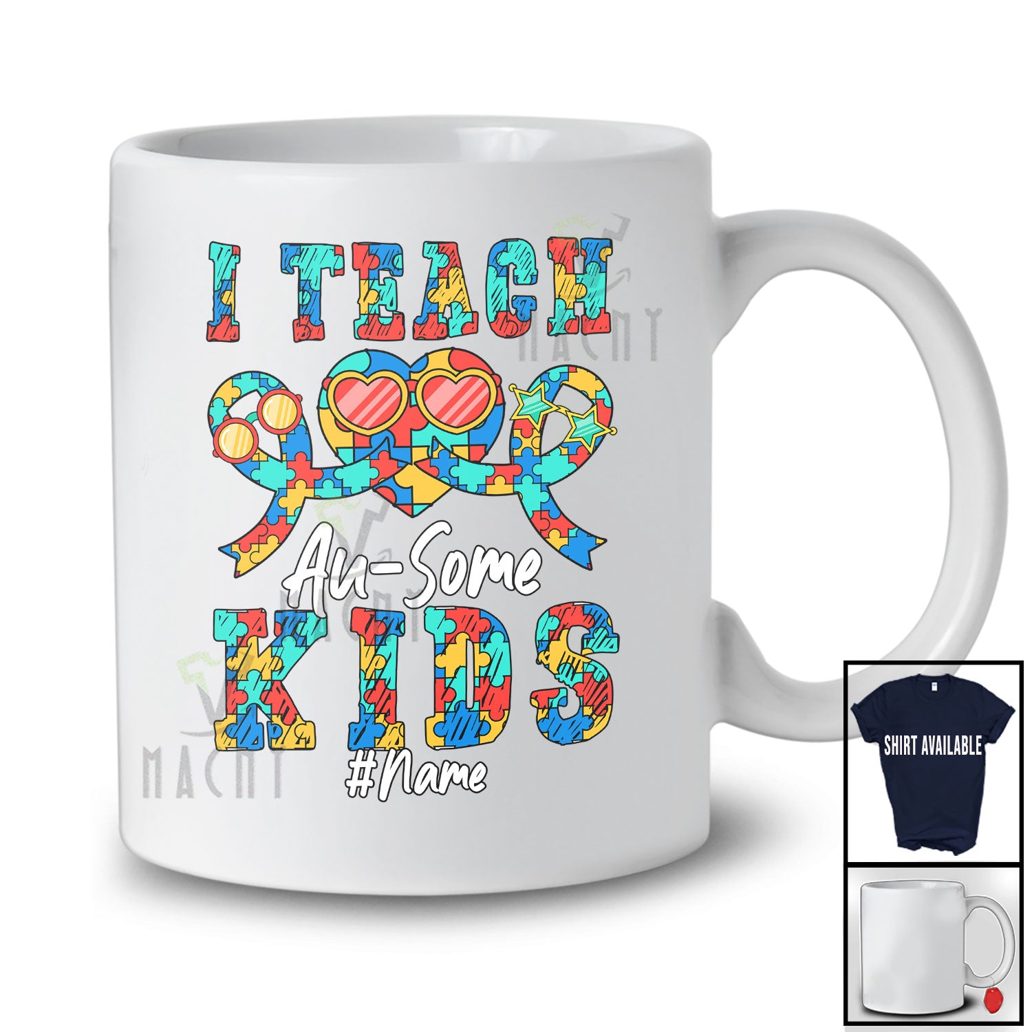 new MacnyStore - Personalized I Teach Au-Some Kids; Awesome Autism Puzzle Heart Ribbons; Custom Name Teacher T-Shirt – Macnystore