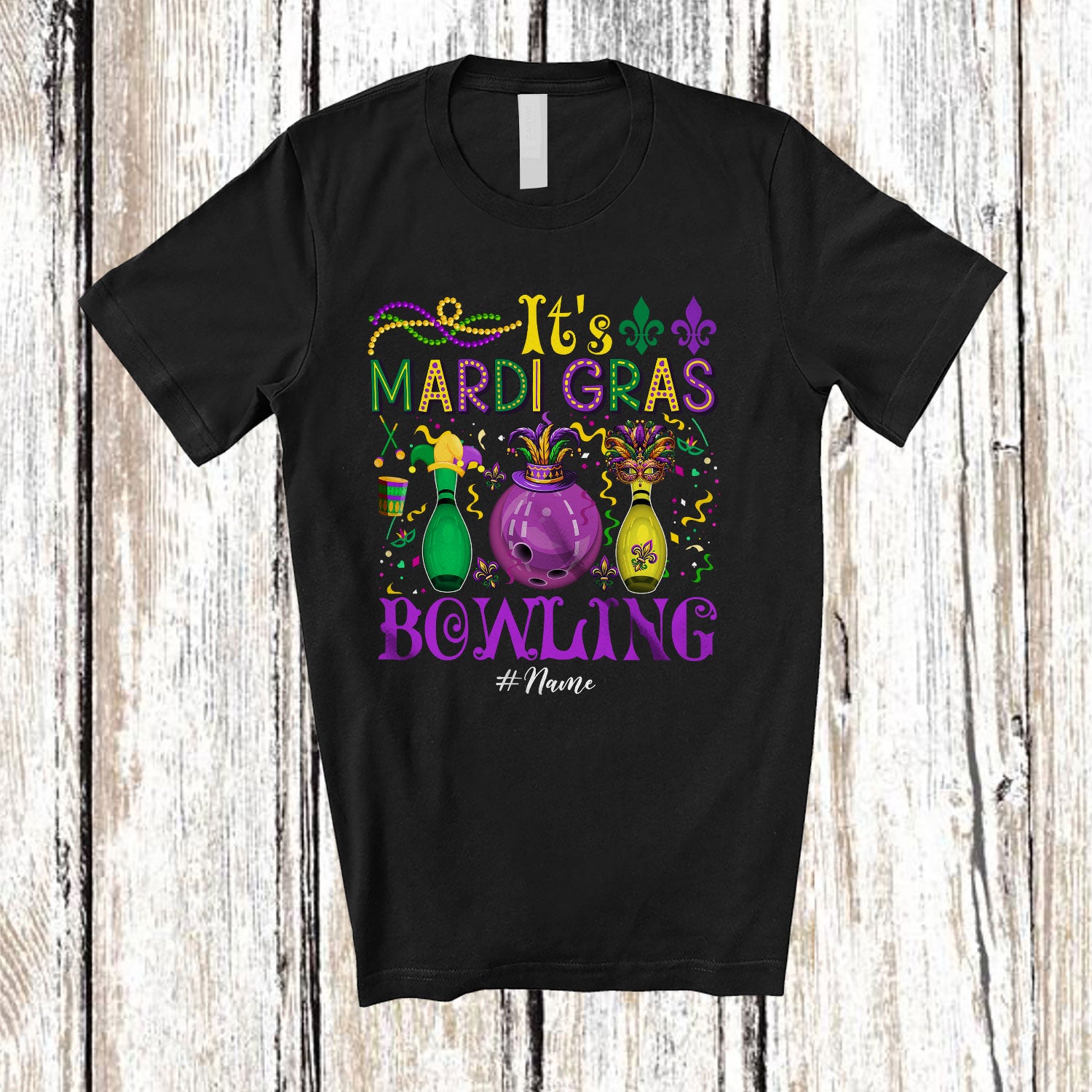 • Personalized It's Mardi Gras Bowling; Lovely Beads Custom Name Bowling Player; Family T-Shirt. This cotton t-shirt is a durable staple product with a classic fit. One of the most popular items, it has a relaxed style made for everyday and casual wear.