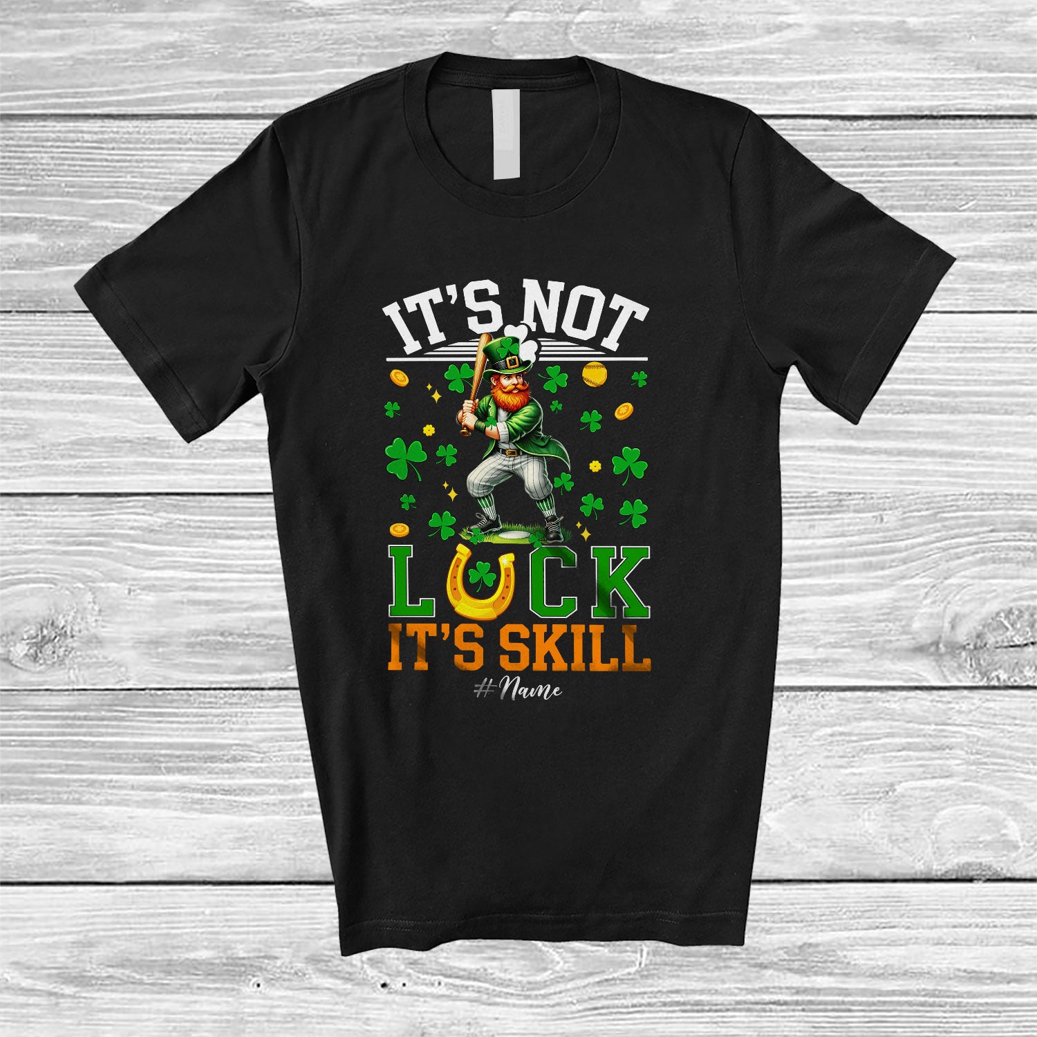 Personalized It's Not Luck It's Skill; Joyful St. Patrick's Day Custom Name Softball Player Leprechaun T-Shirt. This cotton t-shirt is a durable staple product with a classic fit. One of the most popular items, it has a relaxed style made for everyday and casual wear.