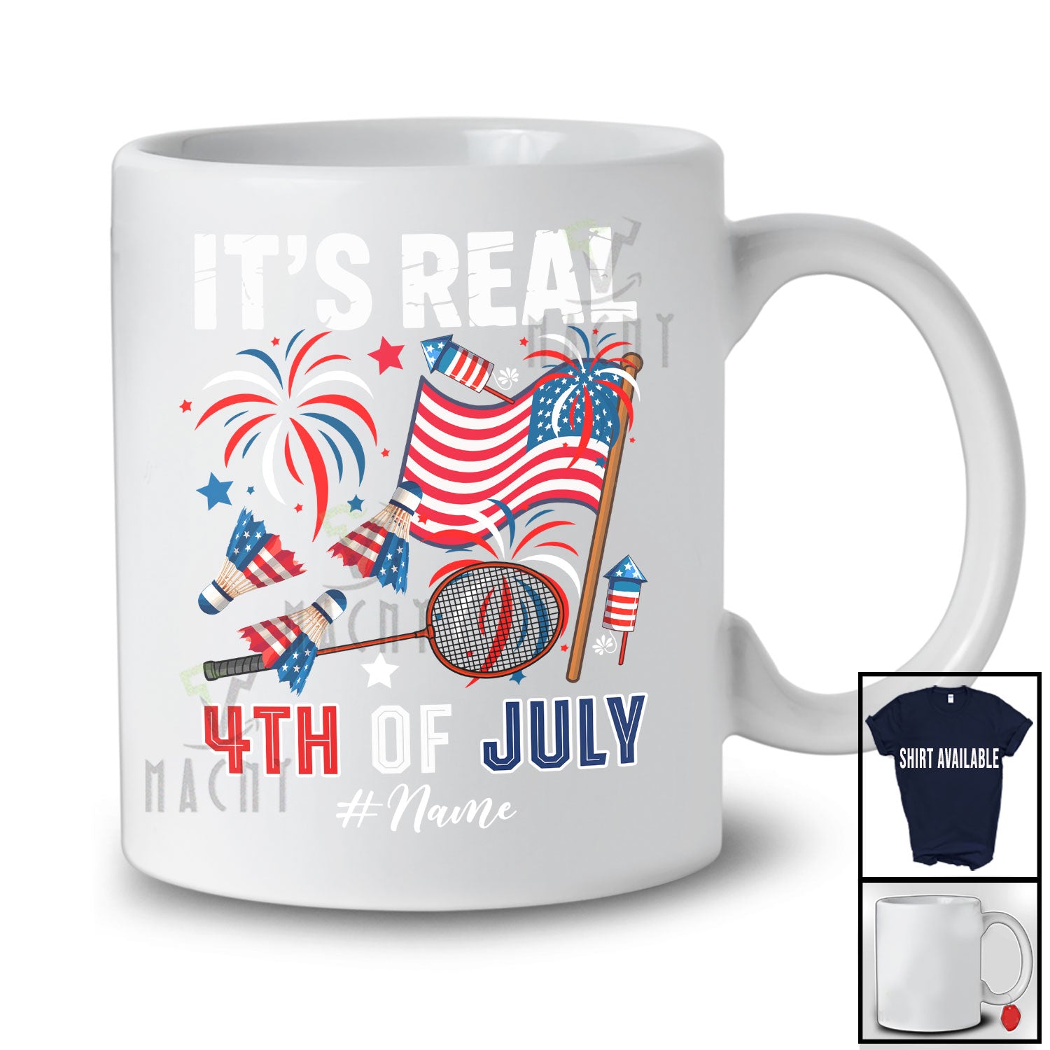 Personalized It's Real 4th of July; Amusing Custom Name Badminton Tools Player US Flag; Patriotic T-Shirt. This cotton t-shirt is a durable staple product with a classic fit. One of the most popular items, it has a relaxed style made for everyday and casual wear.