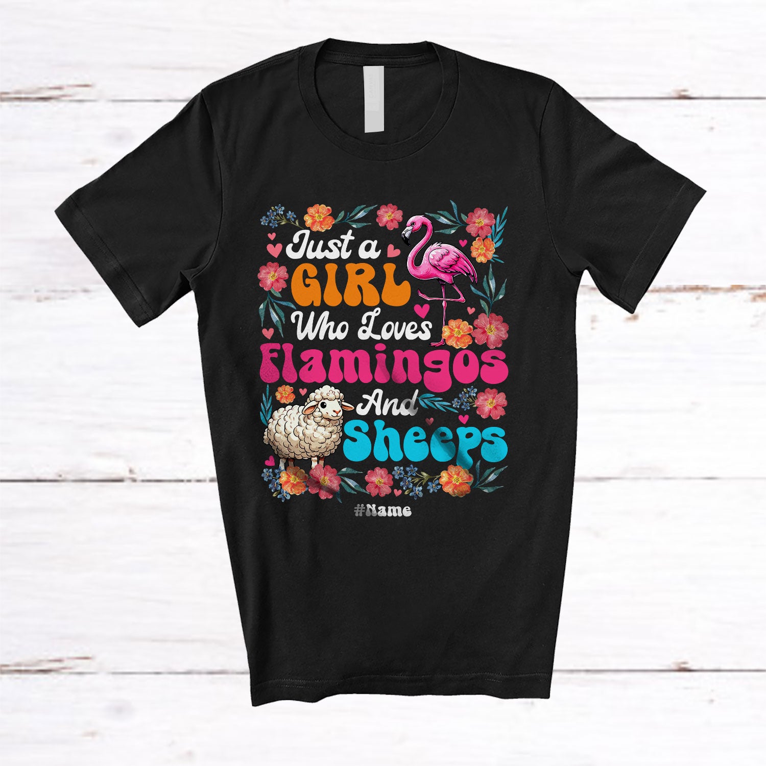 Personalized Just A Girl Who Loves Flamingos Sheeps; Floral Custom Name Farmer; Flowers Farm T-Shirt