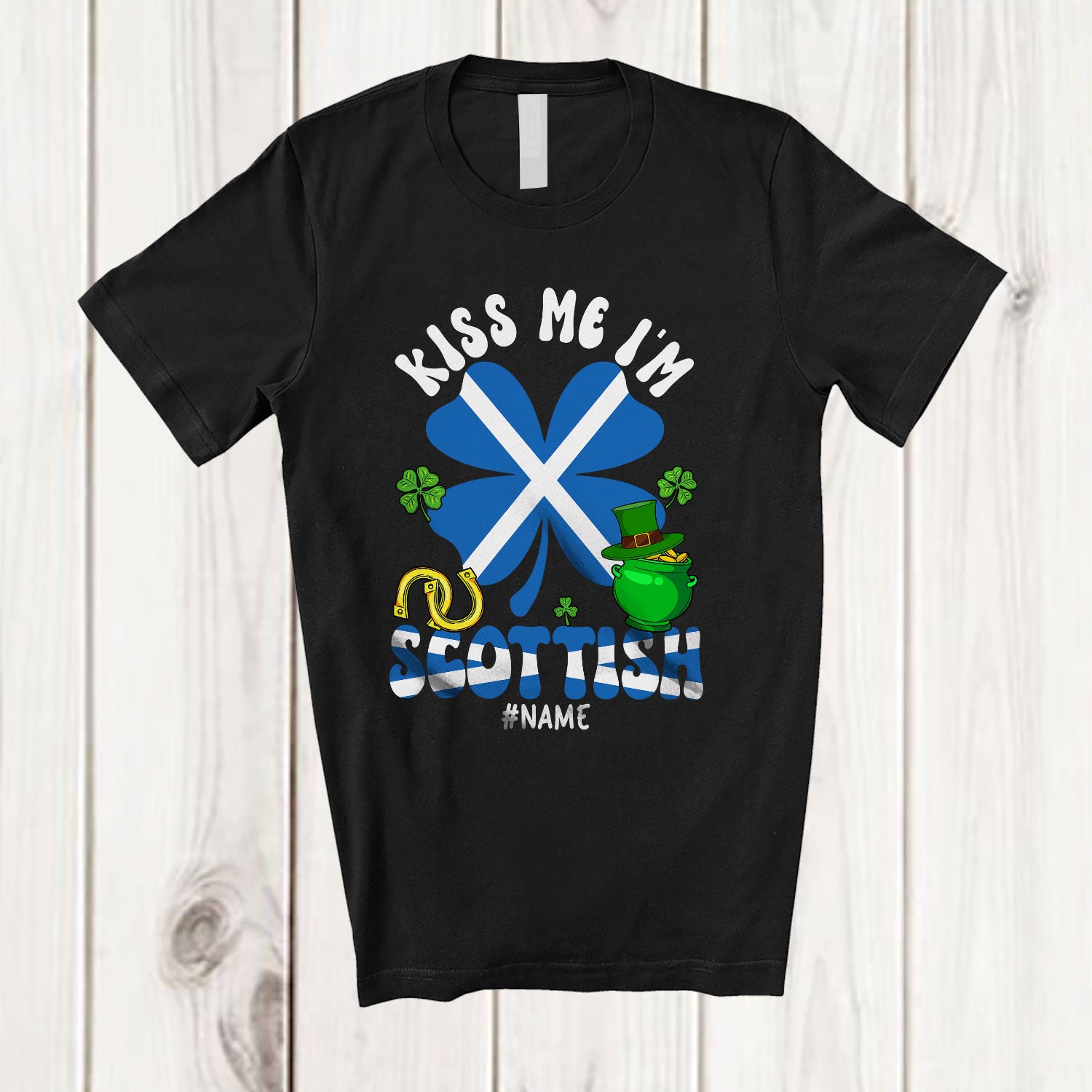 Personalized Kiss Me I'm Scottish; Fantastic St. Patrick's Day Custom Name Scotland Flag Shamrock T-Shirt