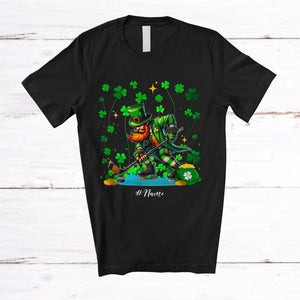 Personalized Leprechaun Playing Ice Hockey; Joyful St. Patrick's Day Shamrock; Custom Name Player T-Shirt