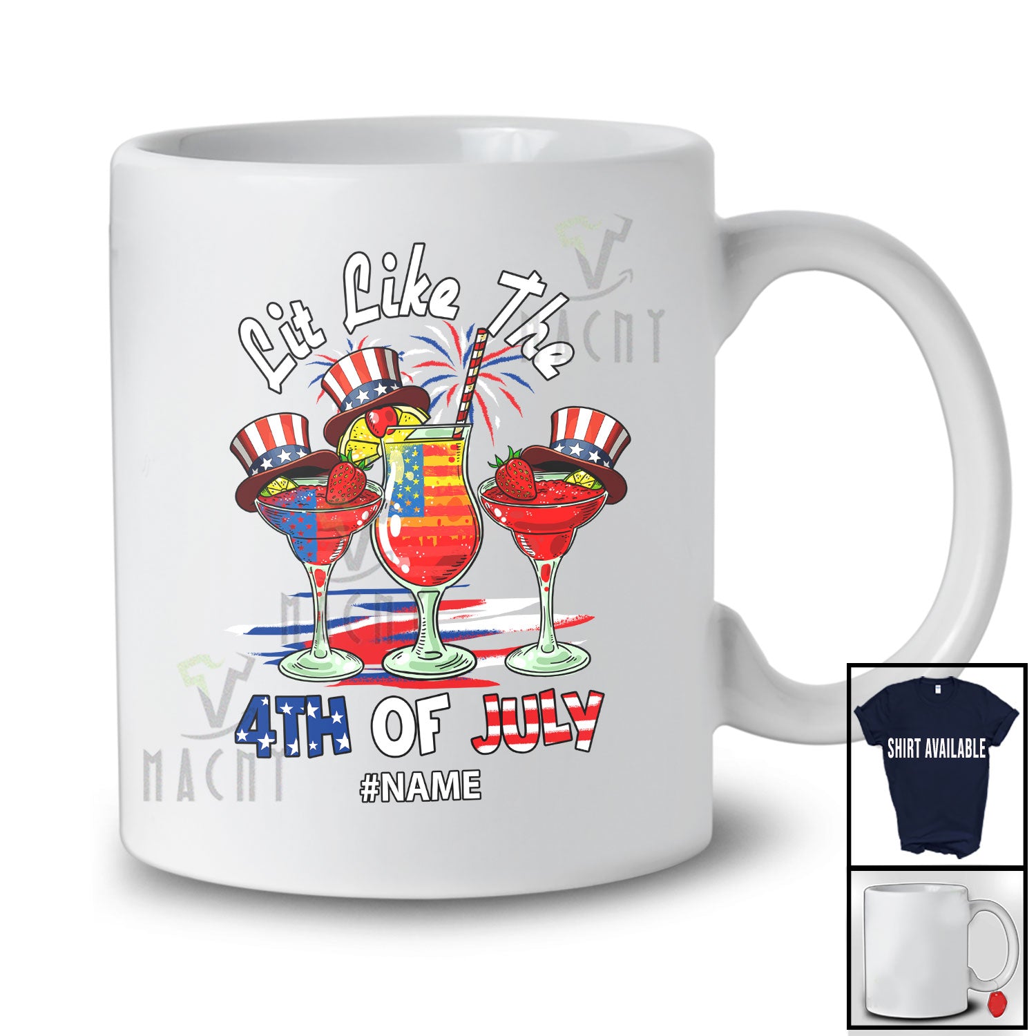Personalized Lit Like The 4th of July; Funny Three Cocktail Glasses Drinking Patriotic Lover T-Shirt. This cotton t-shirt is a durable staple product with a classic fit. One of the most popular items, it has a relaxed style made for everyday and casual wear.