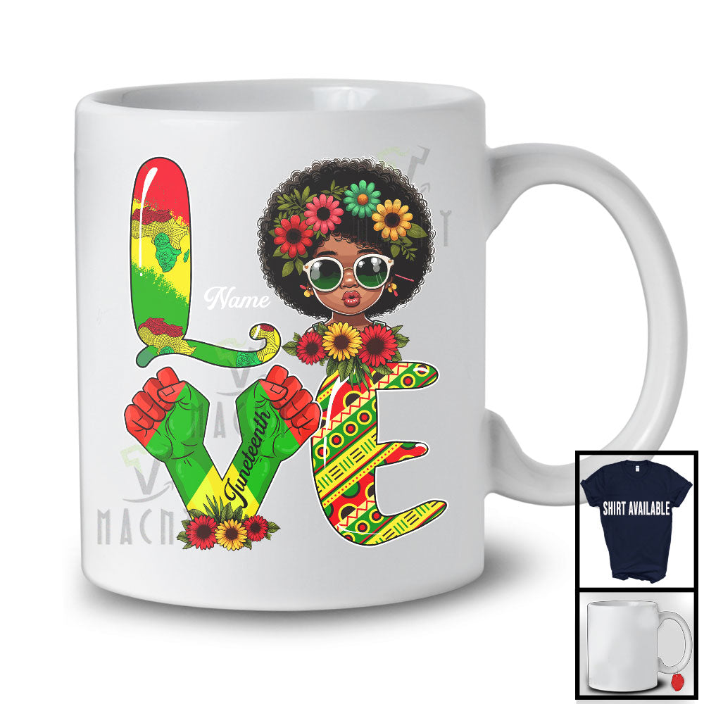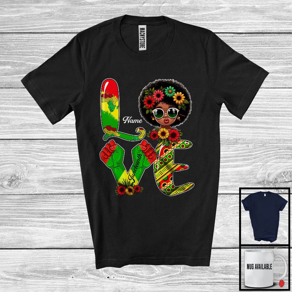 Personalized LOVE, Adorable Juneteenth Custom Name Black Afro Girl, Strong Hands African Pride T-Shirt