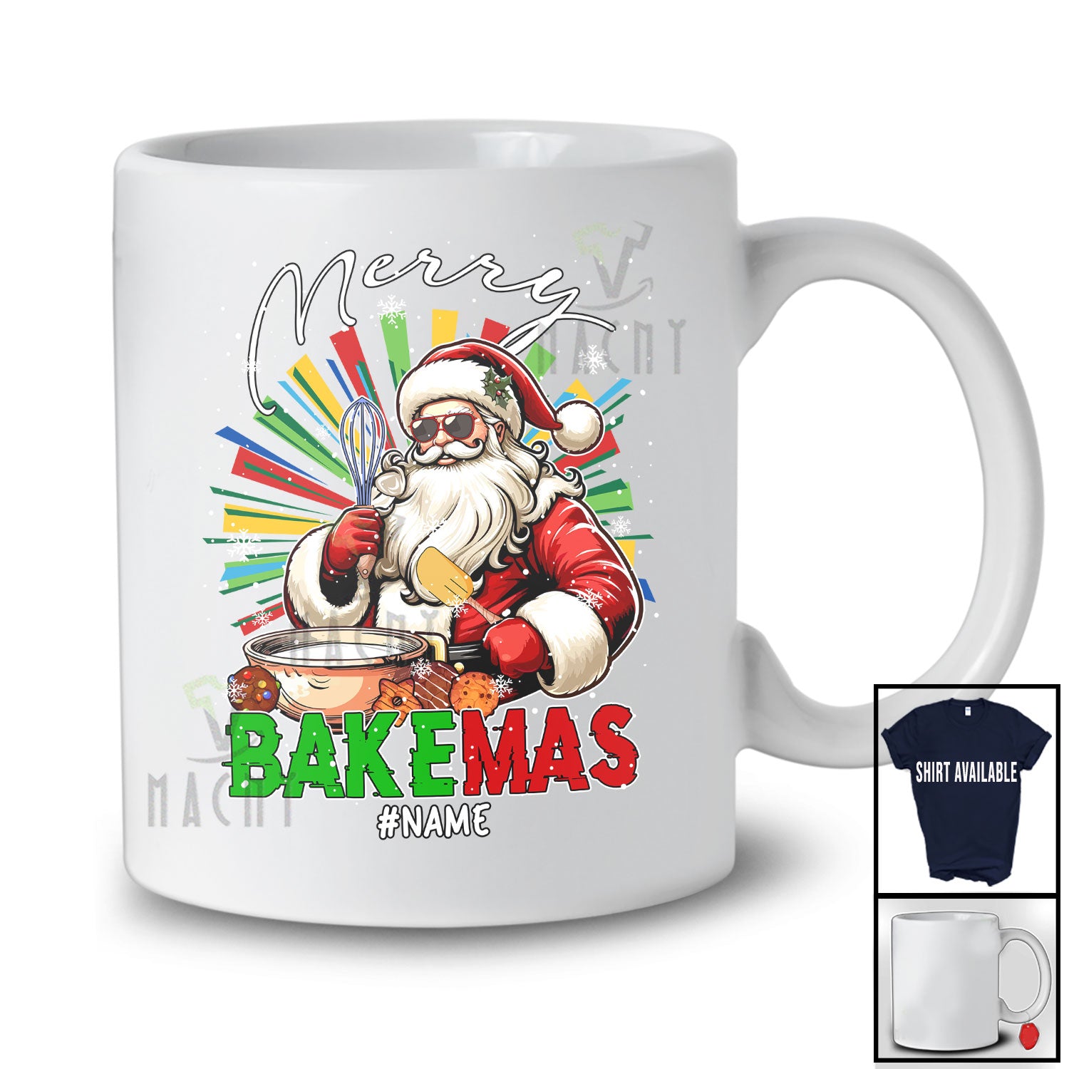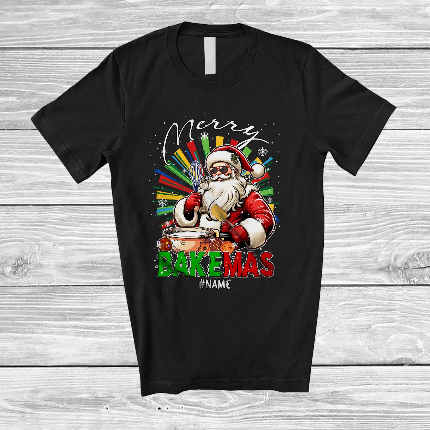 Personalized Merry Bakemas; Amusing Christmas Santa Baking Cookies; Custom Name Family T-Shirt