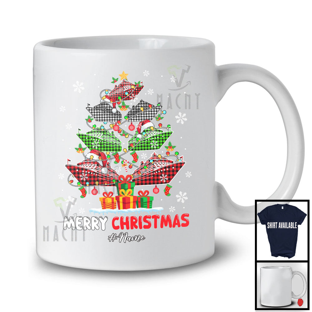 new MacnyStore - Personalized Merry Christmas; Joyful X-mas Tree Plaid Cruise Ship; Captain Custom Name Family T-Shirt – Macnystore