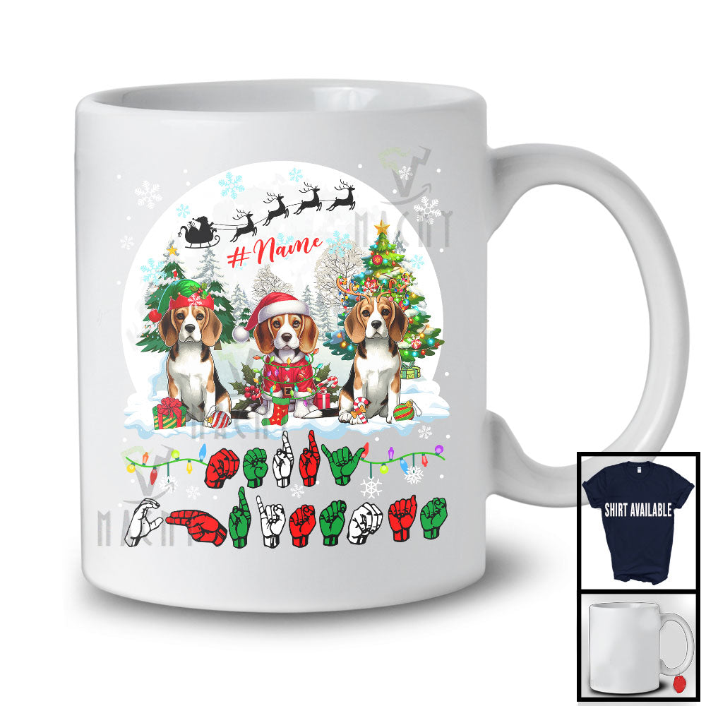 Personalized Merry Christmas; Lovely Custom Name Beagles; ASL Sign Language Moon T-Shirt