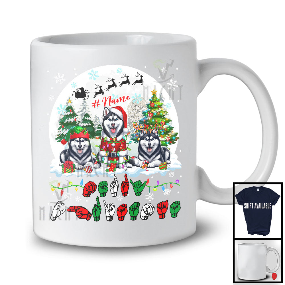 Personalized Merry Christmas; Lovely Custom Name Huskies; ASL Sign Language Moon T-Shirt