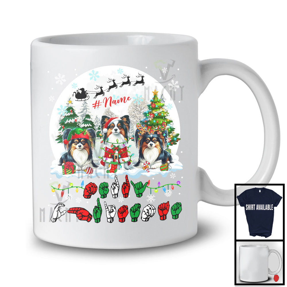 This Personalized Merry Christmas; Lovely Custom Name Papillons; ASL Sign Language Moon T-Shirt is great idea gift for your family, friends in this birthday, christmas, mother's day, father's day, patrick's day or any holiday.