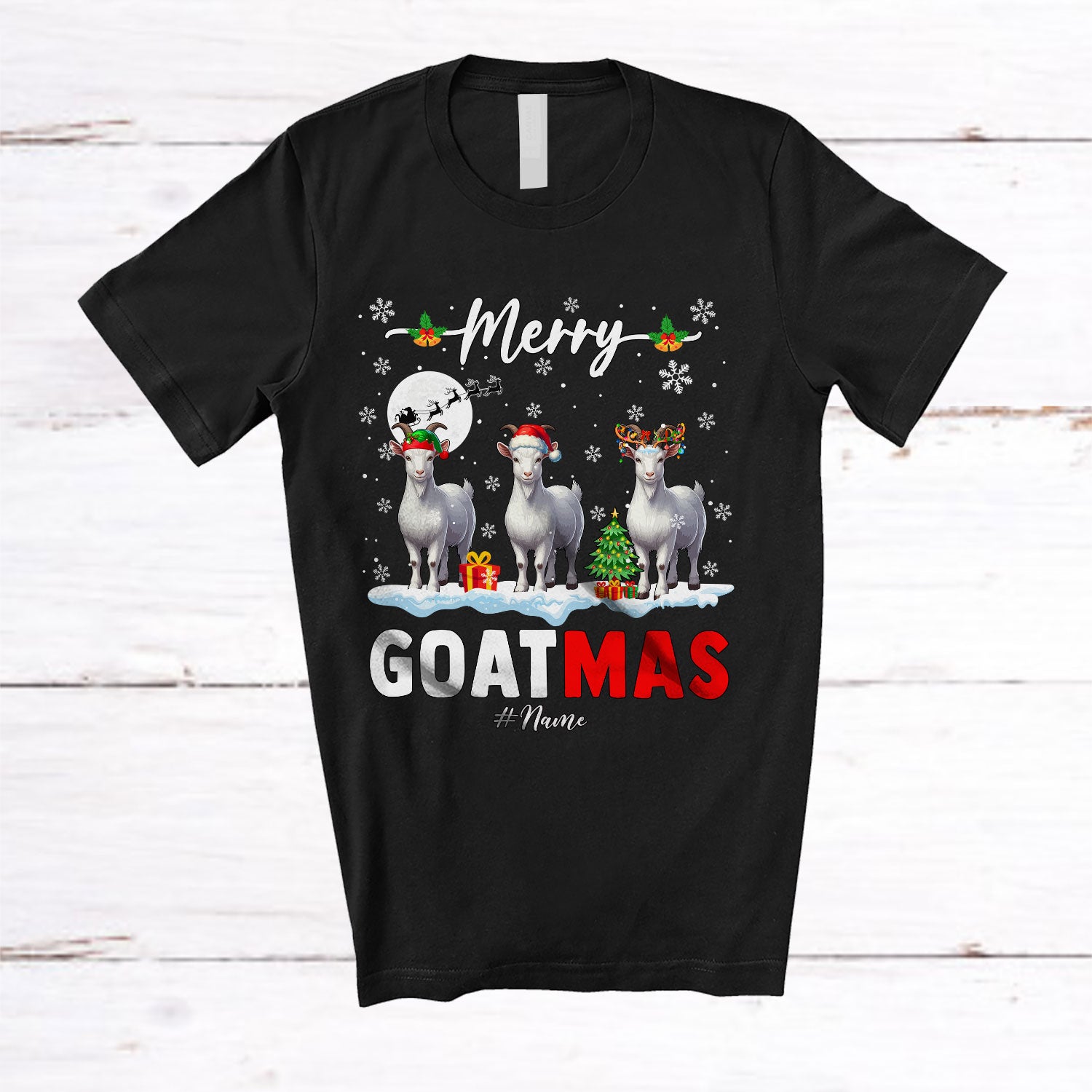 Personalized Merry Goatmas; Wonderful Christmas Snow Three Goat; Custom Name Farm Farmer T-Shirt