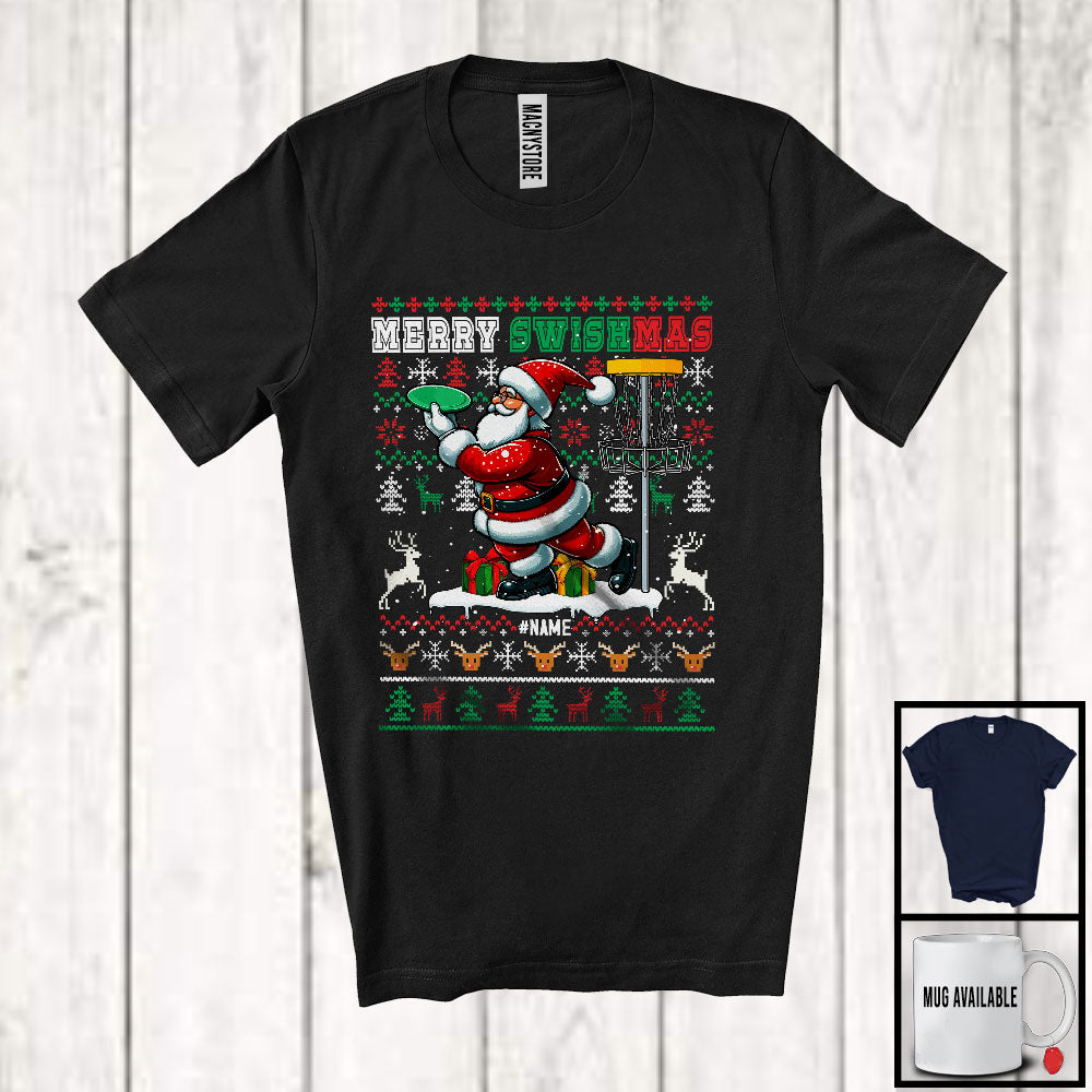 Personalized Merry Swishmas; Joyful Christmas Custom Name Santa Playing Disc Golf Player T-Shirt