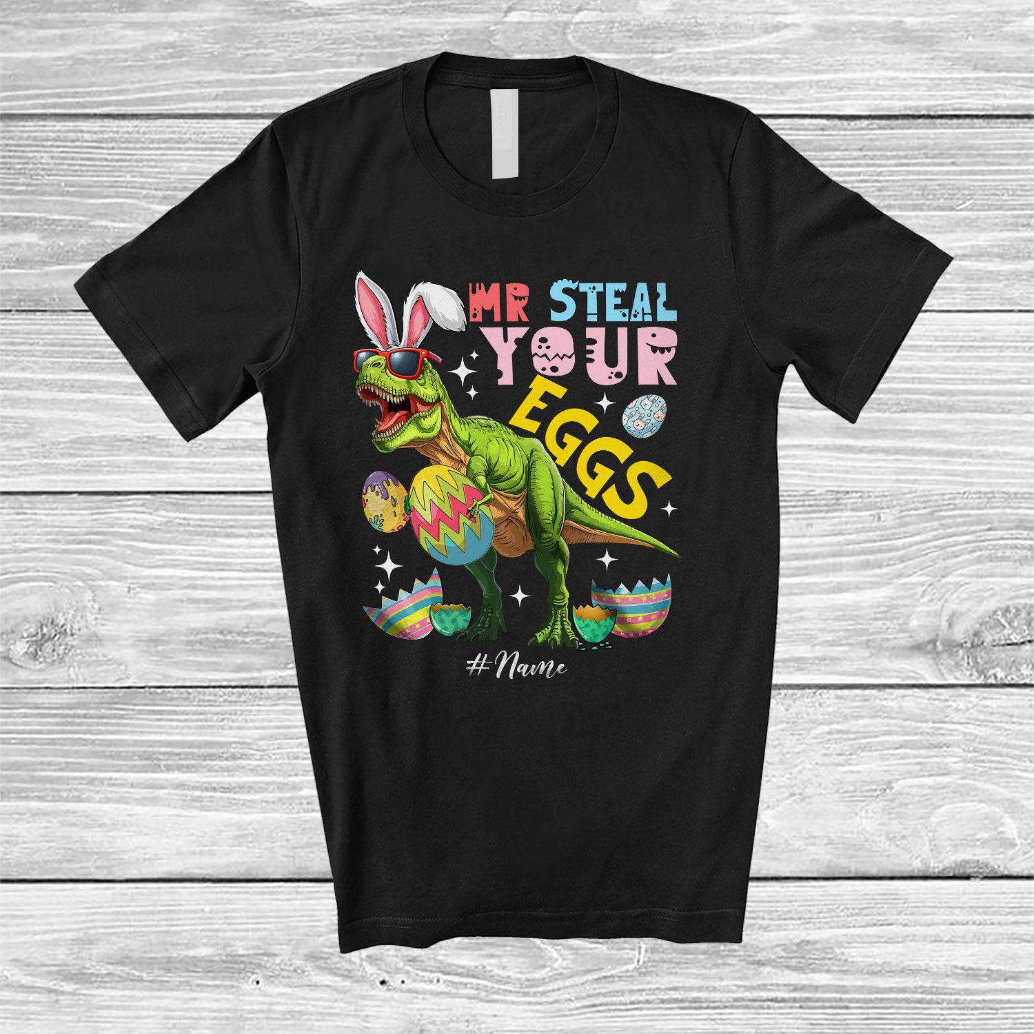 Personalized Mr Steal Your Eggs; Joyful Easter Bunny T-Rex Custom Name Boys Couple Eggs Hunt T-Shirt