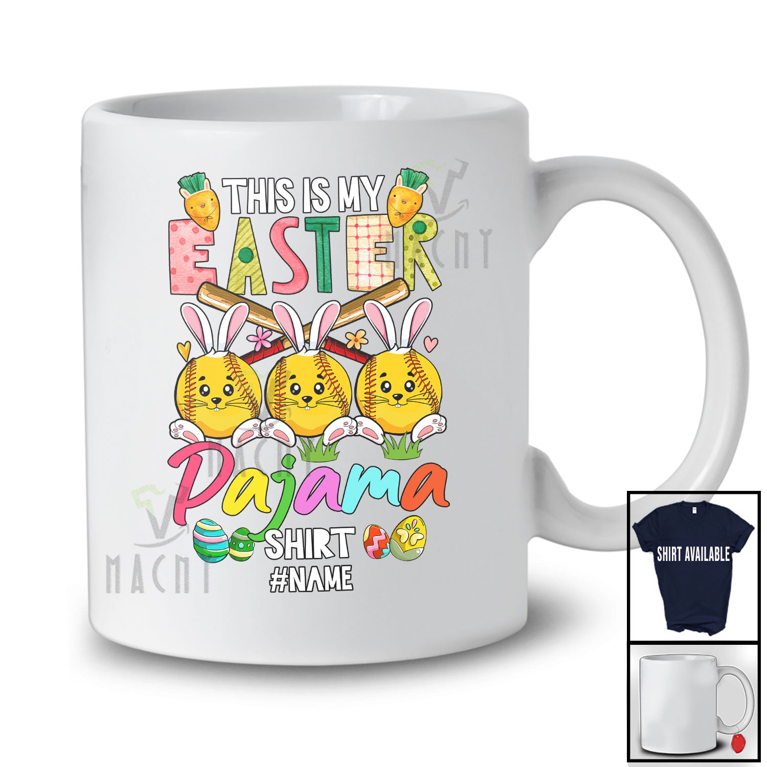 Personalized My Easter Pajama Shirt; Lovely Three Bunnies Softball; Custom Name Player T-Shirt. This cotton t-shirt is a durable staple product with a classic fit. One of the most popular items, it has a relaxed style made for everyday and casual wear.