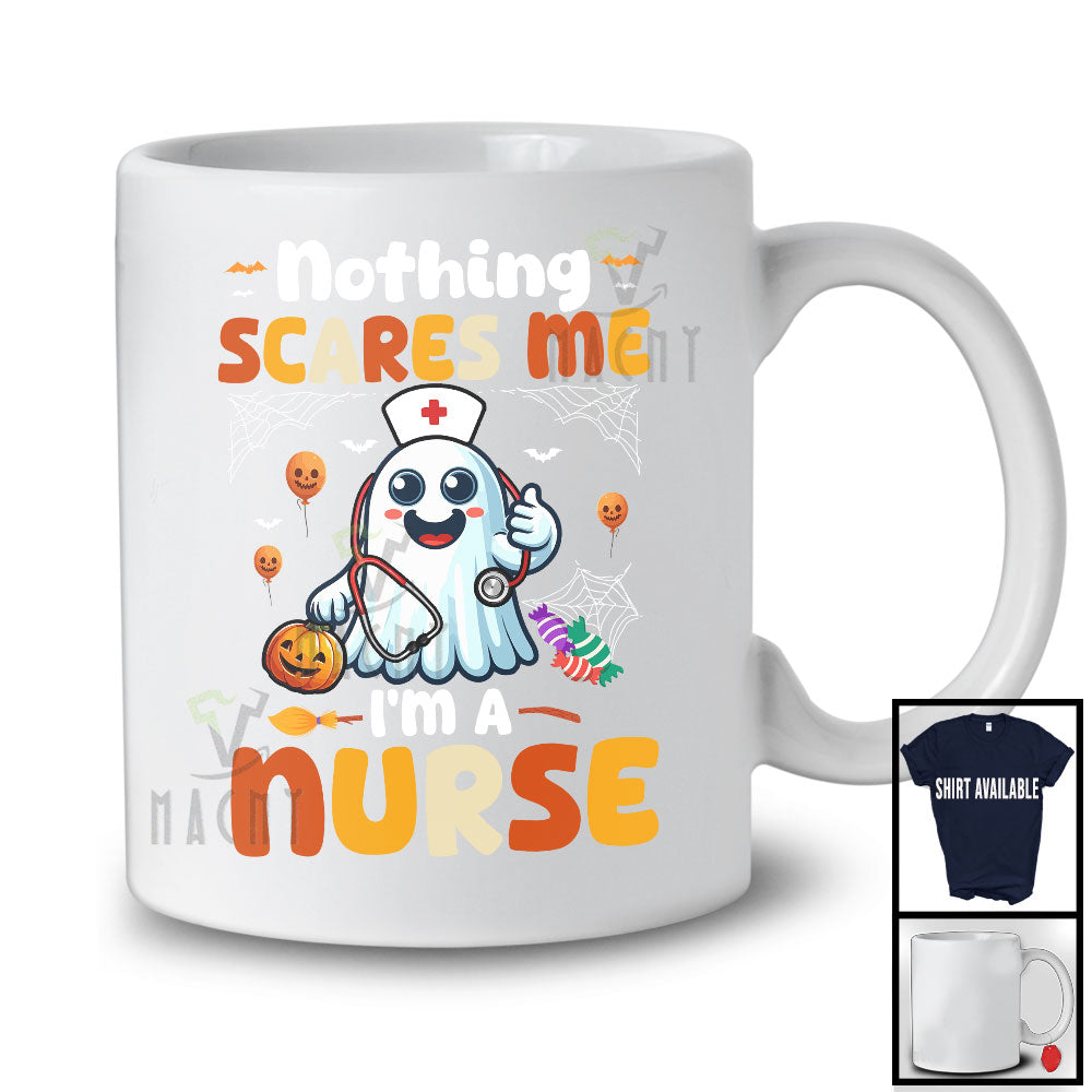 The Personalized Nothing Scares Me I'm A Nurse; Lovely Halloween Custom Name Boo Ghost T-Shirt destined to impress, and priced at only $12.95, for a limited time.