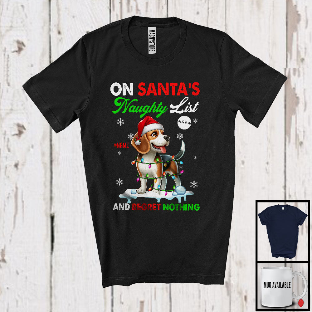 Personalized On Santa's Naughty List; Lovely Christmas Custom Name Beagle Owner T-Shirt