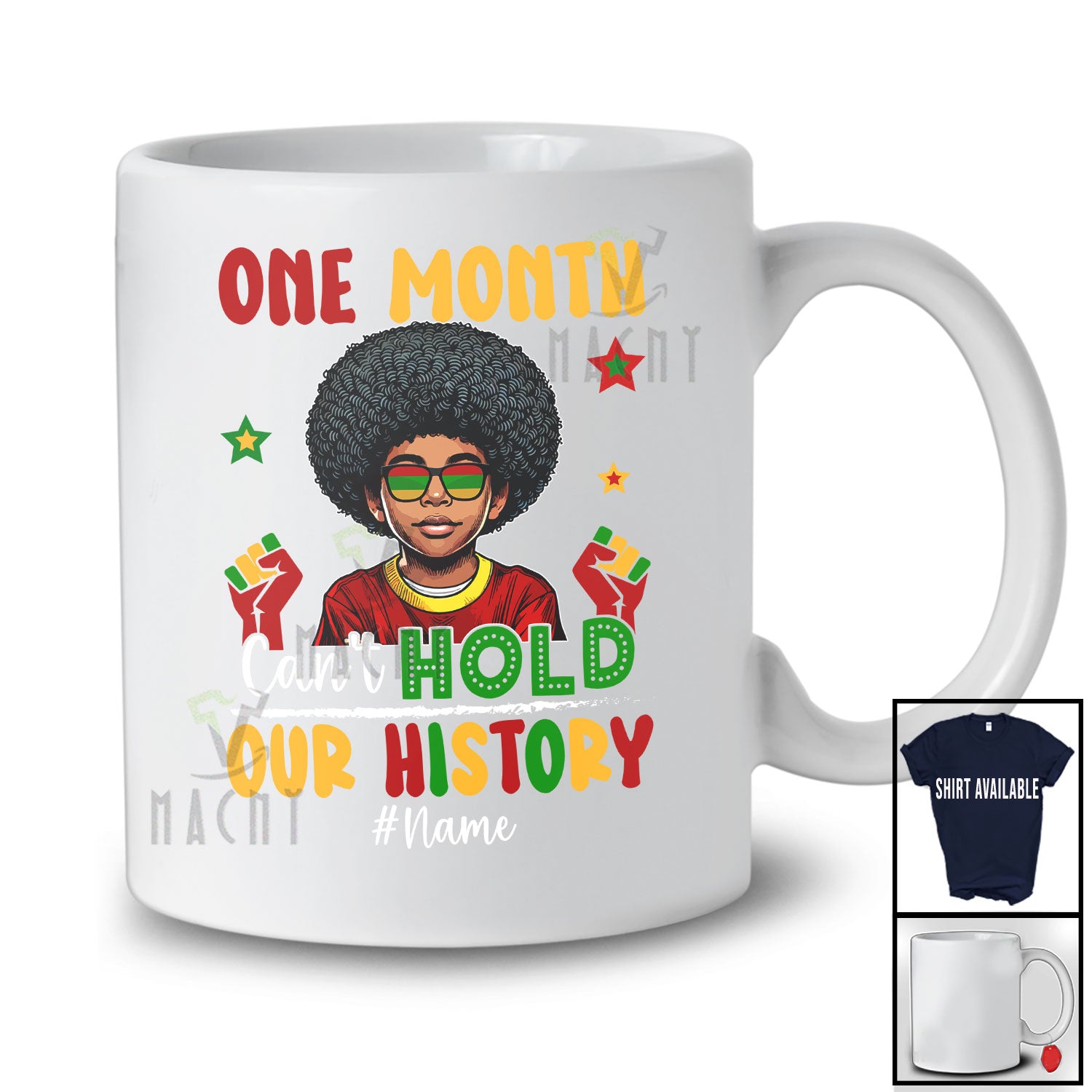 This Personalized One Month Can't Hold Our Story; Proud Black History Juneteenth Custom Name Boy Afro T-Shirt is great idea gift for your family, friends in this birthday, christmas, mother's day, father's day, patrick's day or any holiday.