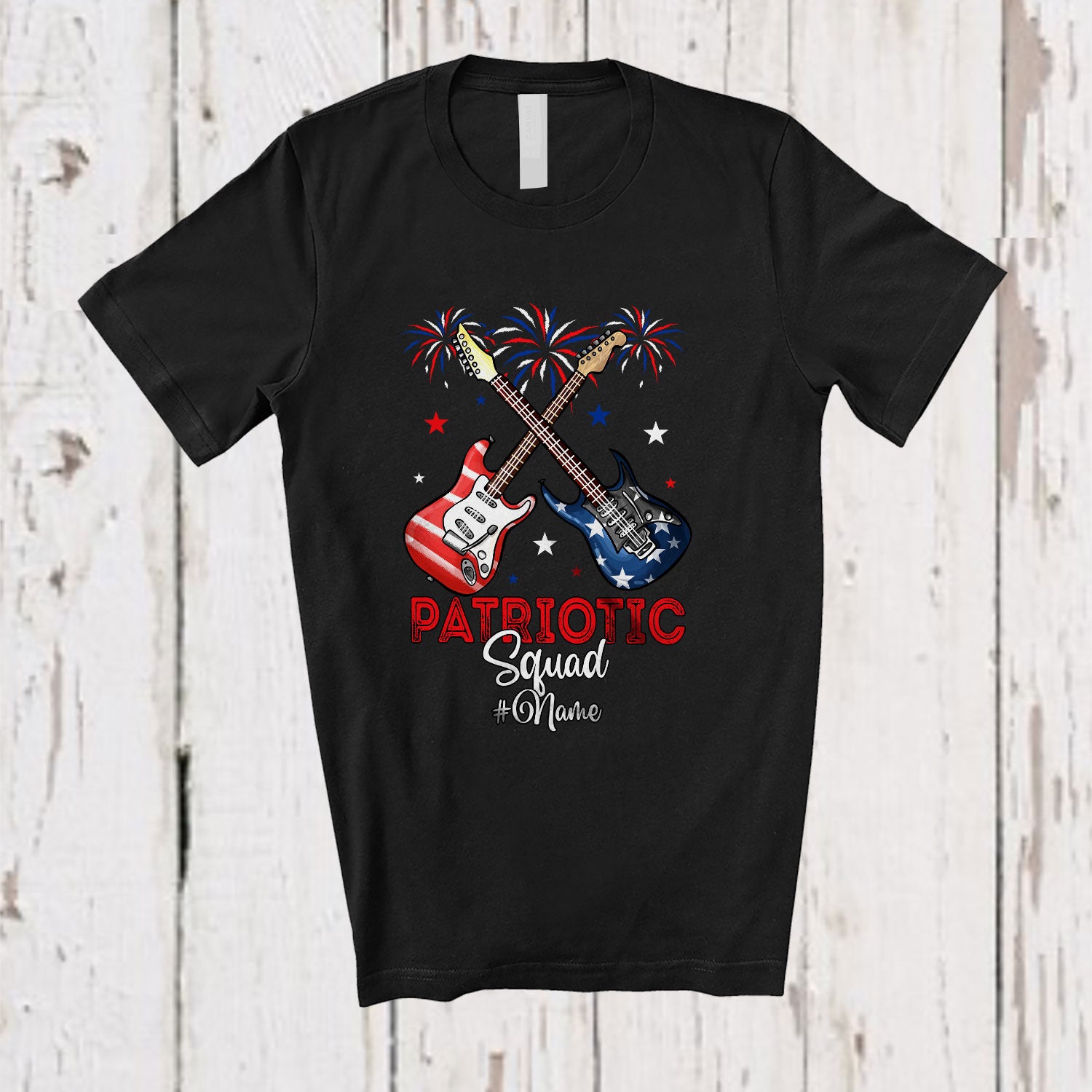 Personalized Patriotic Squad; Amusing 4th Of July Custom Name Guitar Player; Patriotic T-Shirt