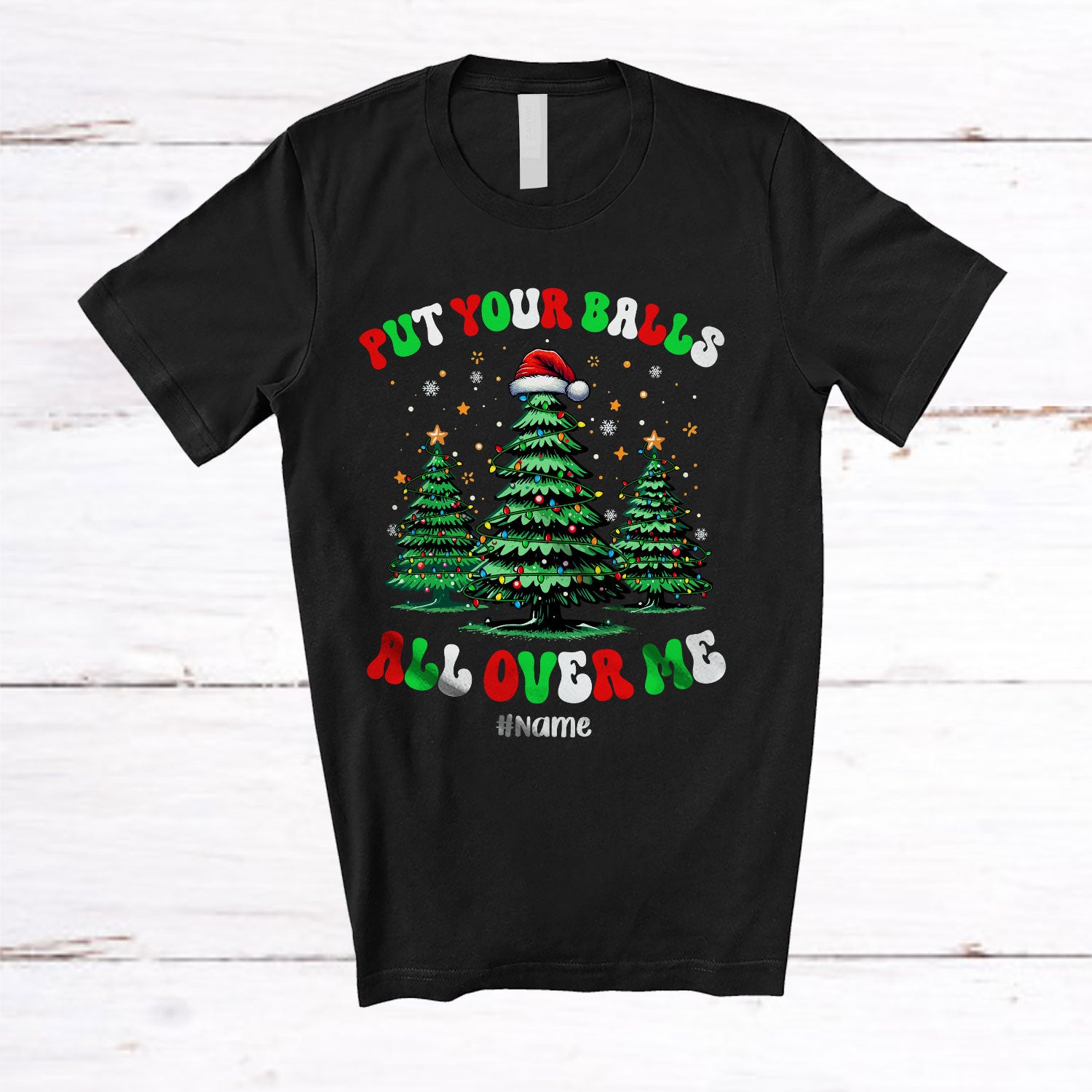 Personalized Put Your Balls All Over Me; Sarcastic Christmas Trees Adult Groovy; Custom Name Family T-Shirt