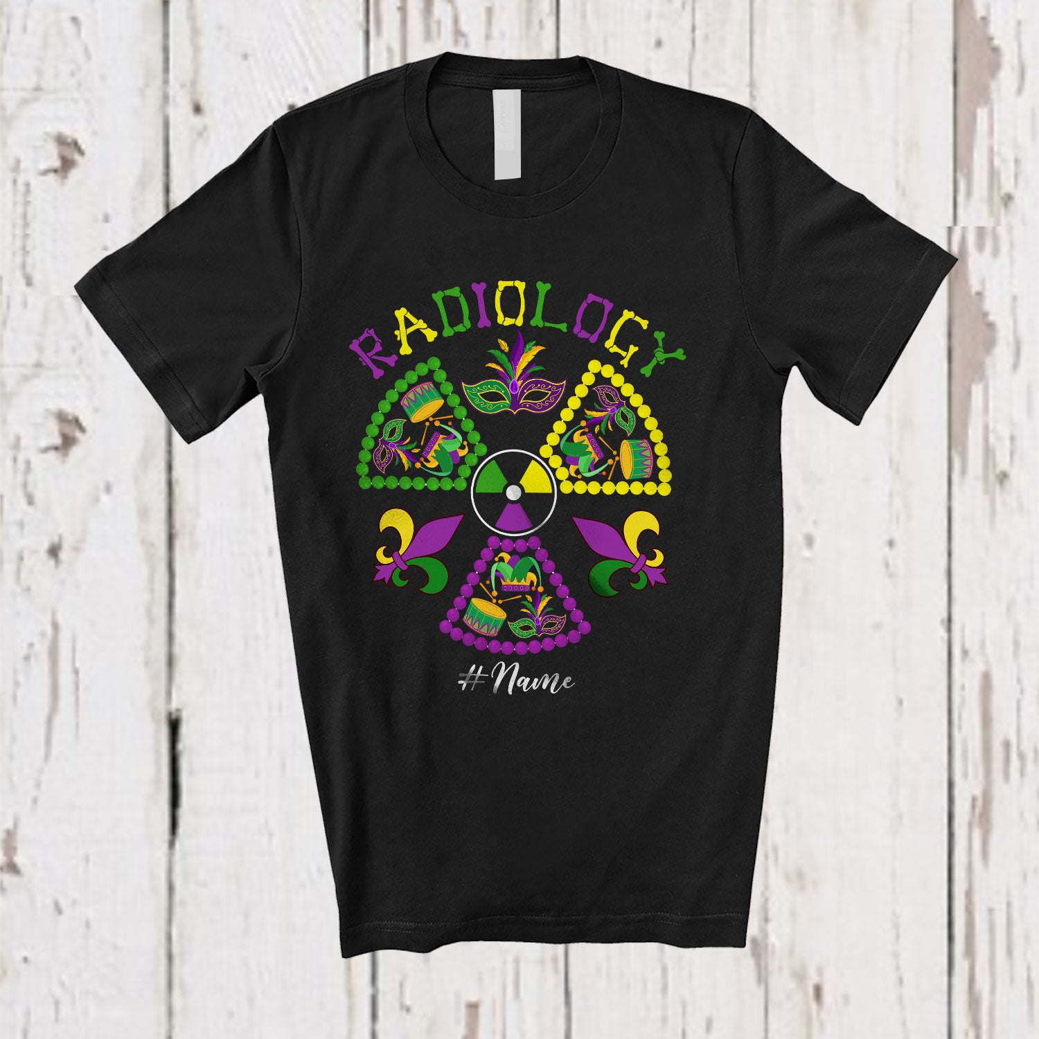 Personalized Radiology; Joyful Mardi Gras Mask Beads; Custom Name X-Ray Tech Radiologist T-Shirt