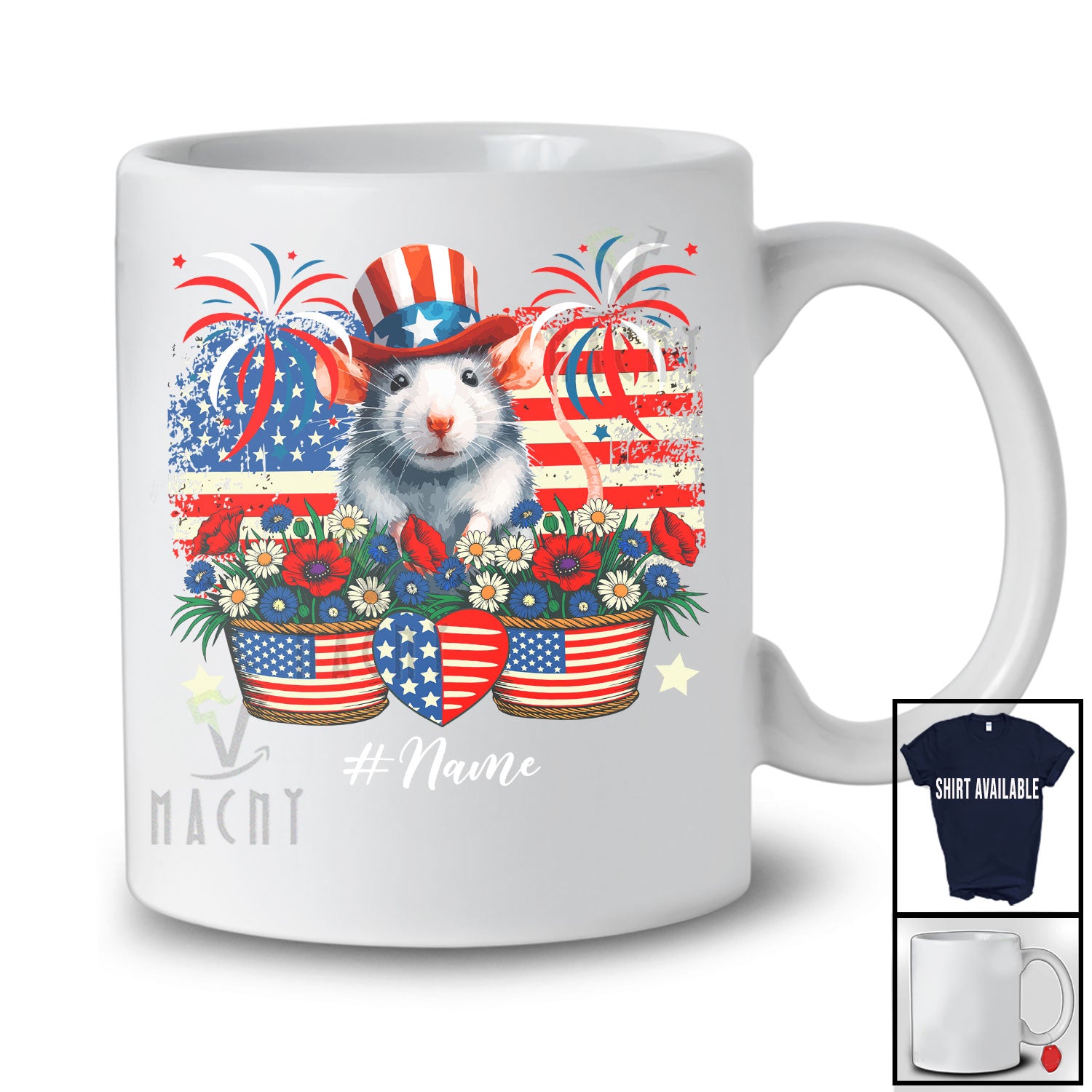 • Personalized Rat Flowers Wearing American Flag Hat; Lovely 4th Of July Custom Name Patriotic T-Shirt. This cotton t-shirt is a durable staple product with a classic fit. One of the most popular items, it has a relaxed style made for everyday and casual wear.