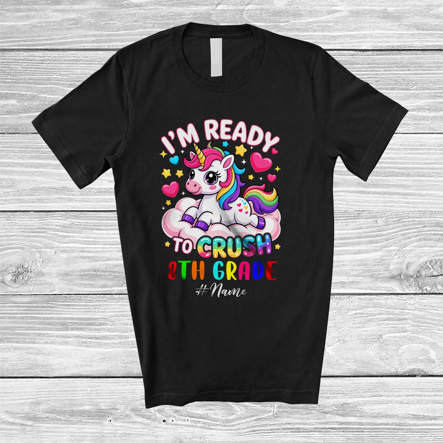 Personalized Ready To Crush 8th Grade; Lovely First Day Of School Unicorn Custom Name Students T-Shirt
