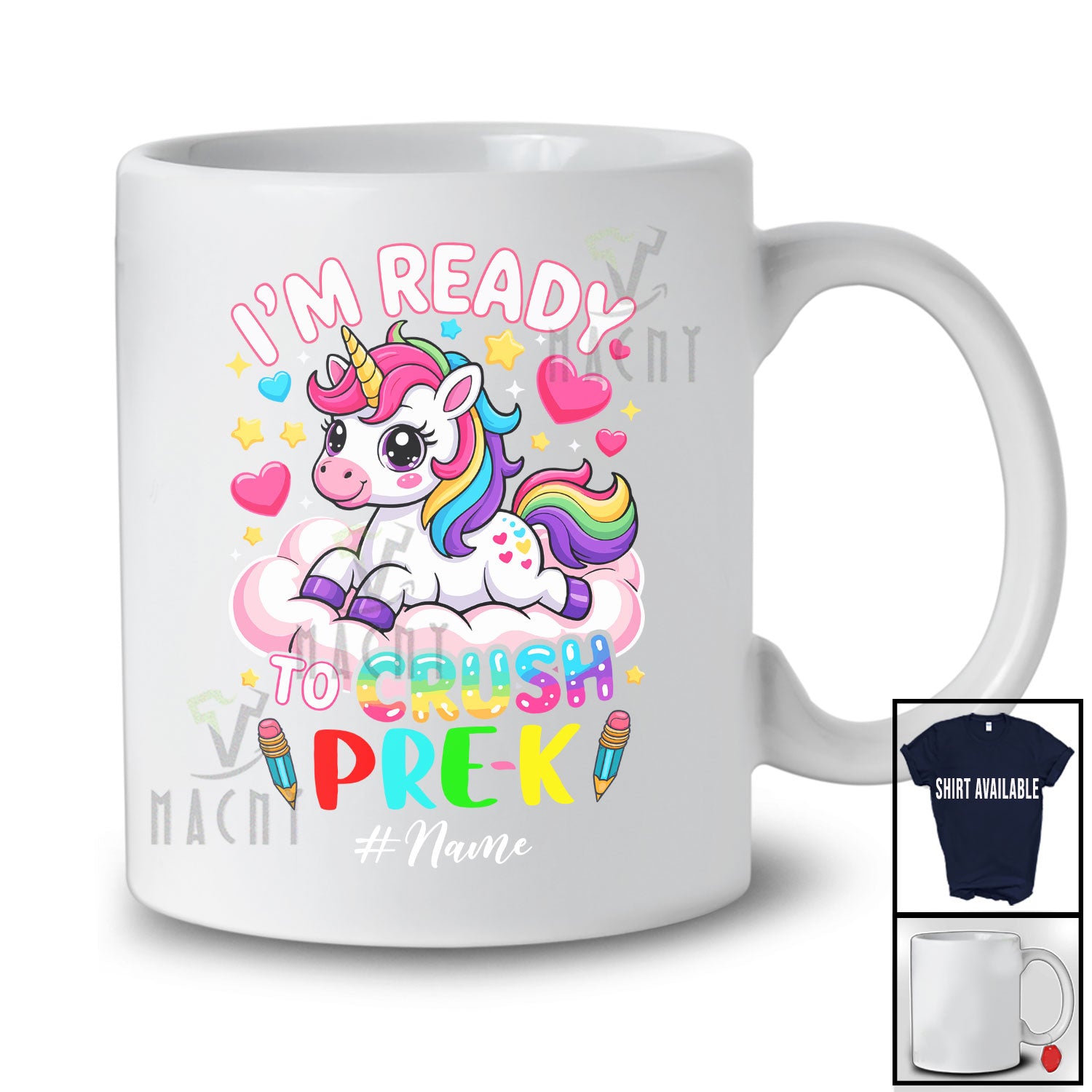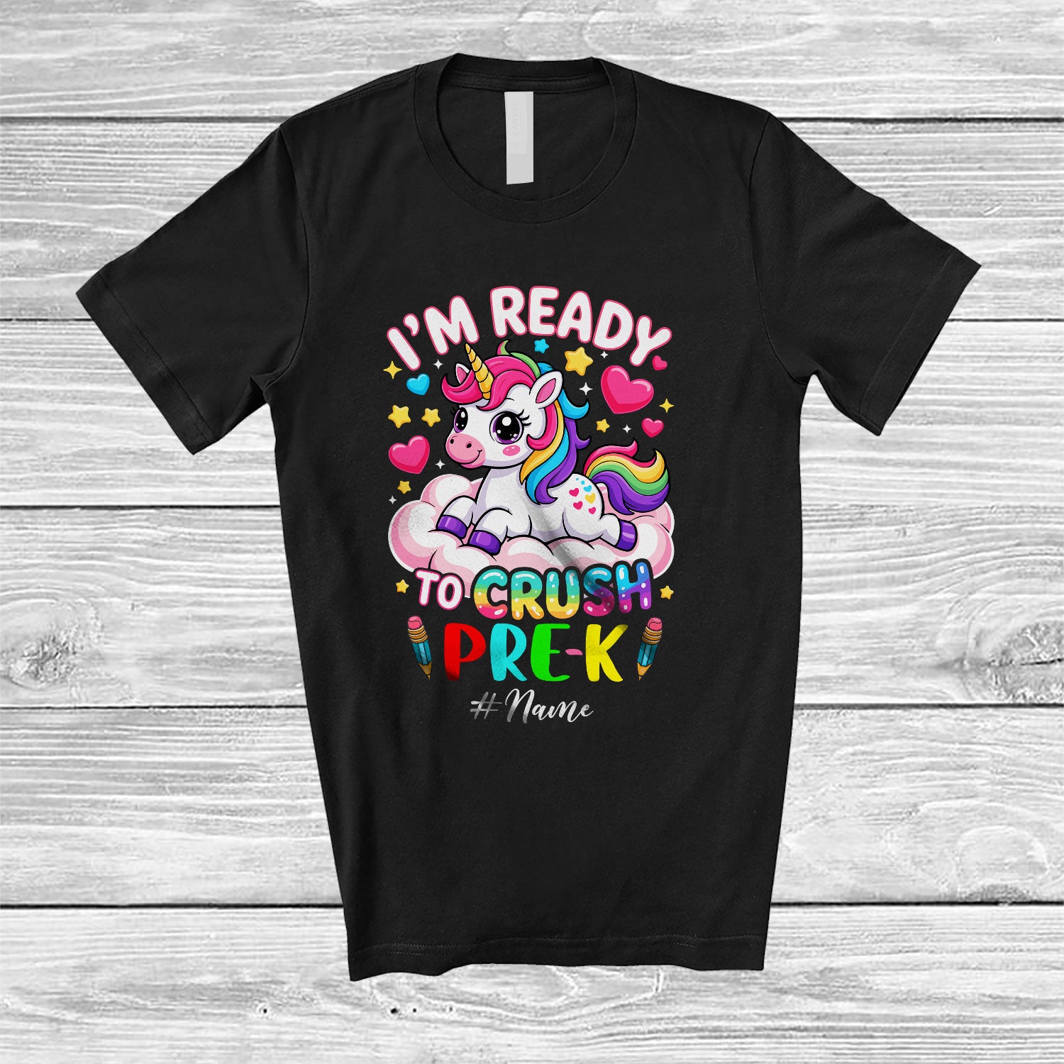 The Personalized Ready To Crush Pre-K; Lovely First Day Of School Unicorn Custom Name Students T-Shirt was built with people like you in mind. Something to keep you happy. Every. Single. Day.