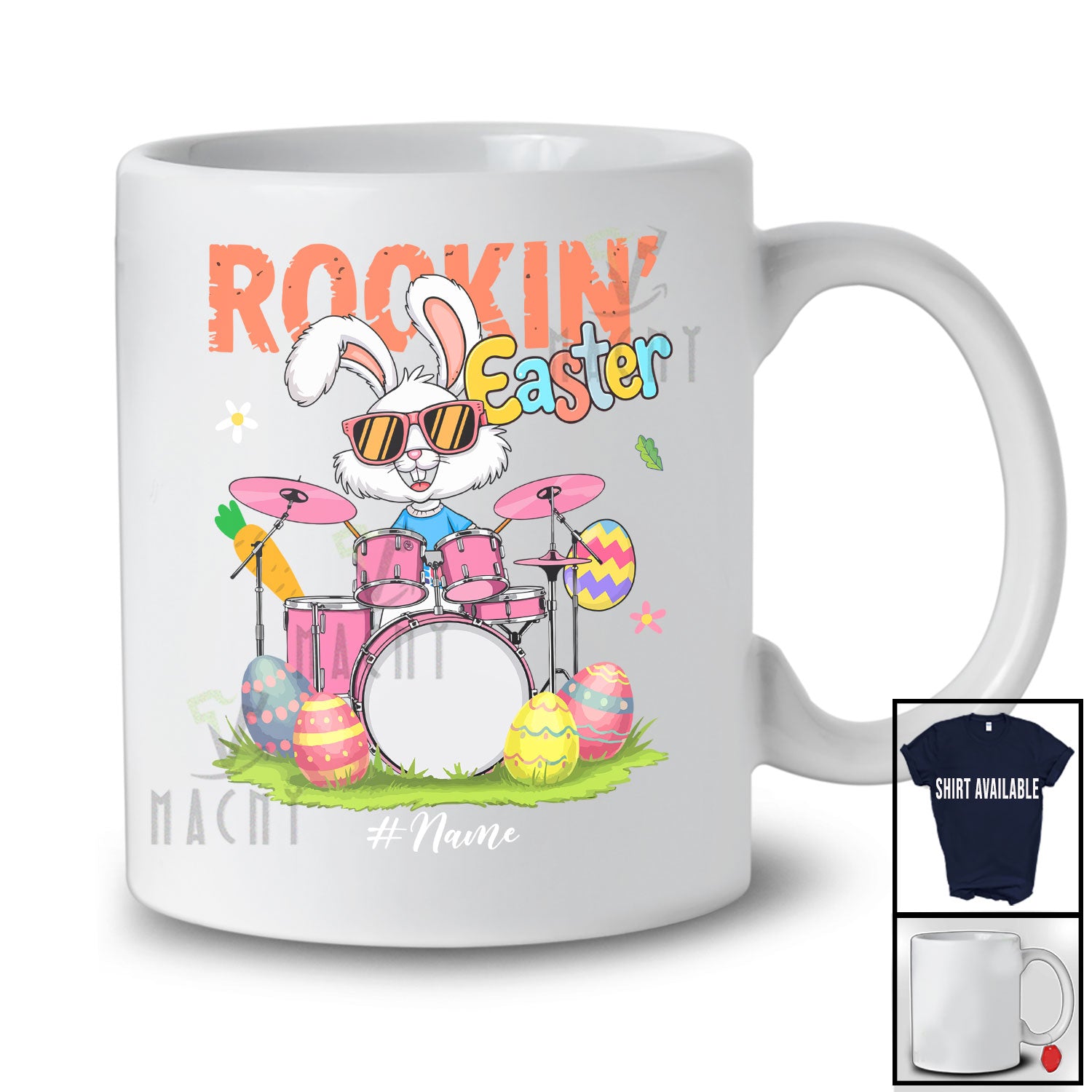 Personalized Rockin' Easter; Joyful Easter Music Bunny Playing Drum; Custom Name Drummer T-Shirt
