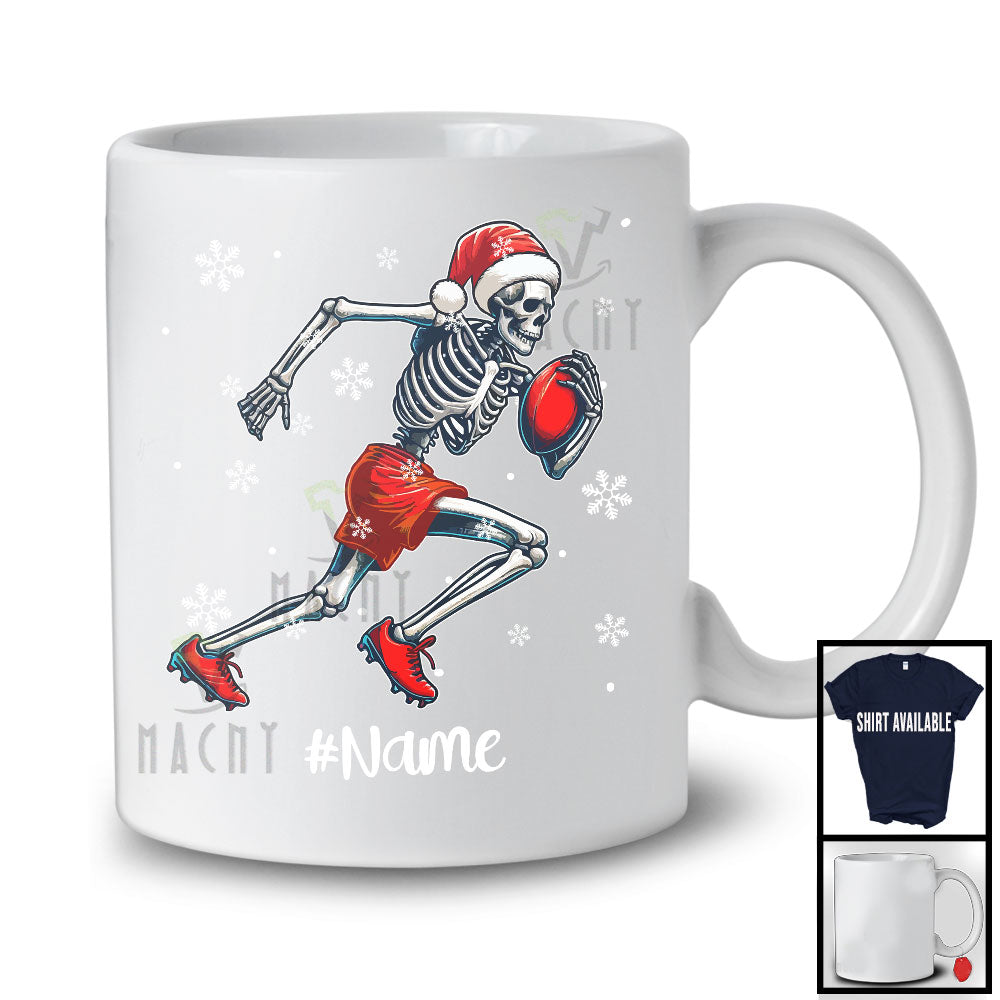 new MacnyStore - Personalized Santa Skeleton Playing Football, Joyful Christmas Custom Name Football Player T-Shirt – Macnystore