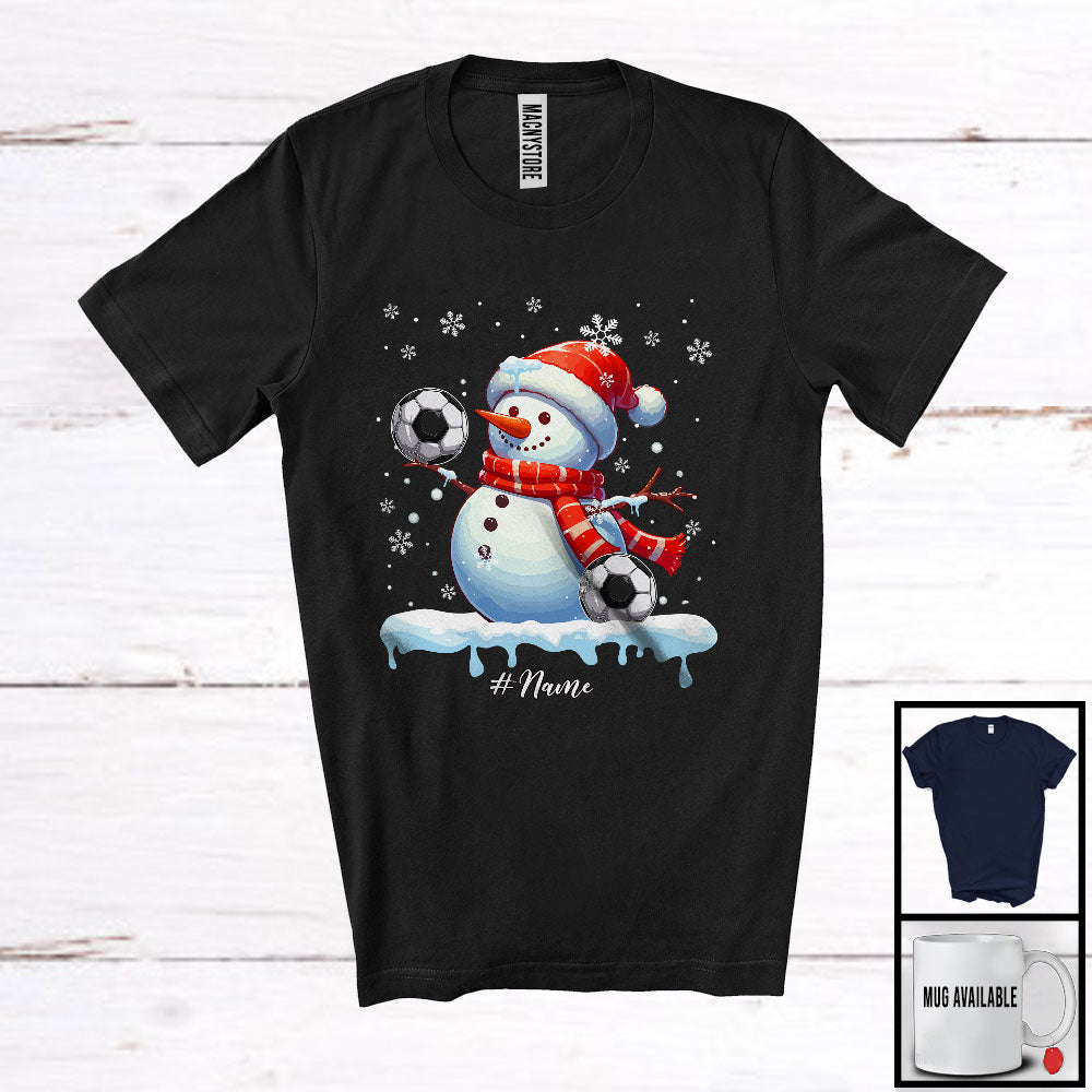 Personalized Snowman Playing Soccer; Fantastic Christmas Custom Name Soccer Player; Sport T-Shirt