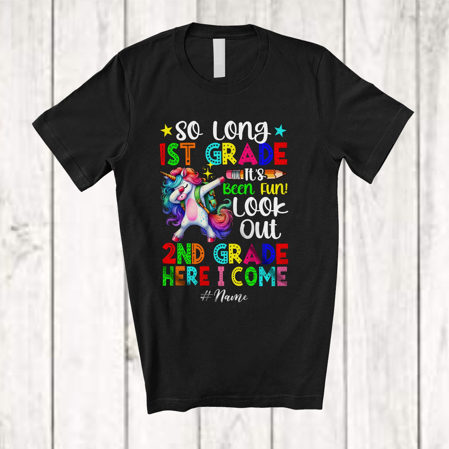 Personalized So Long 1st Grade Look Out 2nd Grade; Lovely Last Day Of School Custom Name Unicorn T-Shirt
