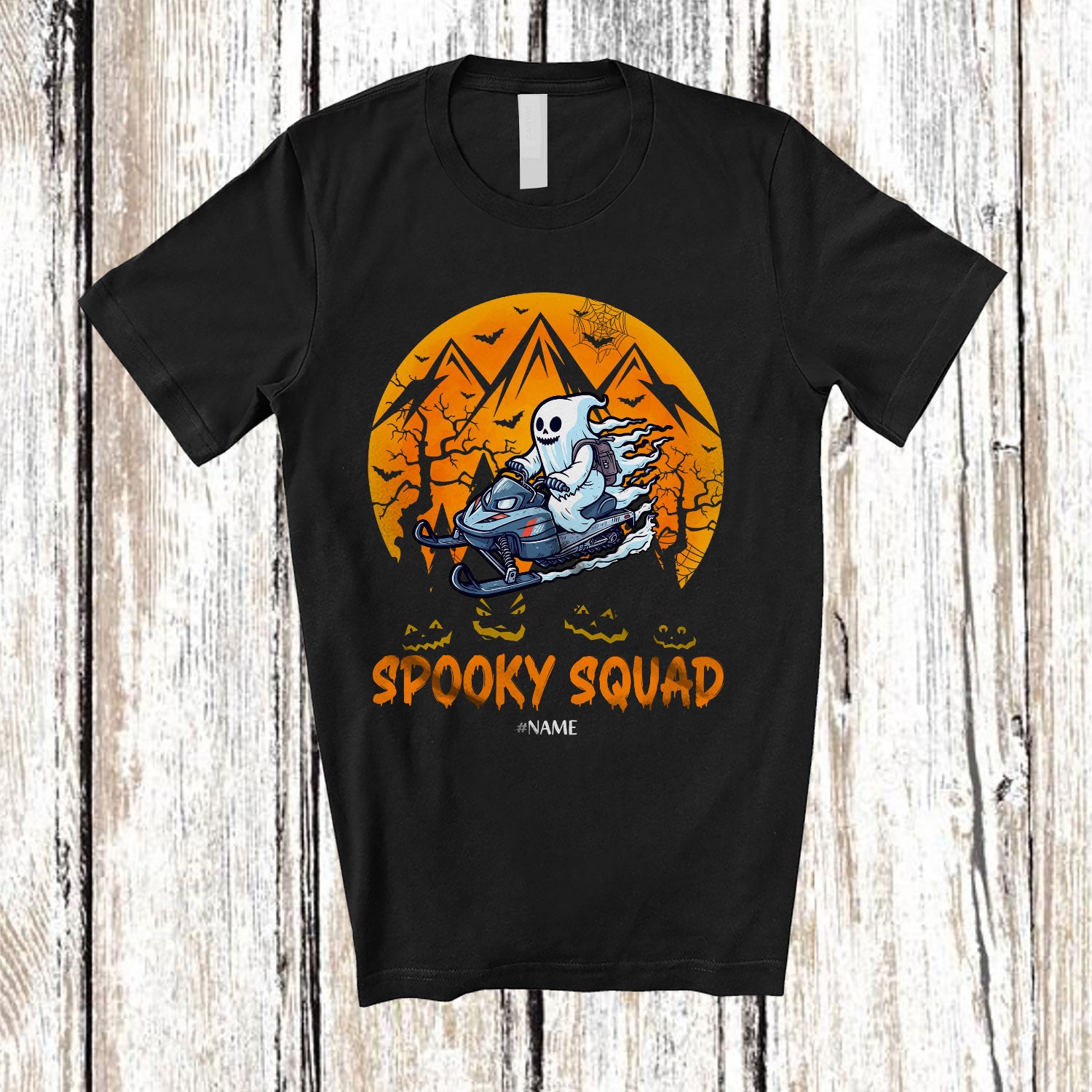 new MacnyStore - Personalized Spooky Squad; Humorous Halloween Moon Custom Name Boo Ghost Snowmobile T-Shirt – Macnystore