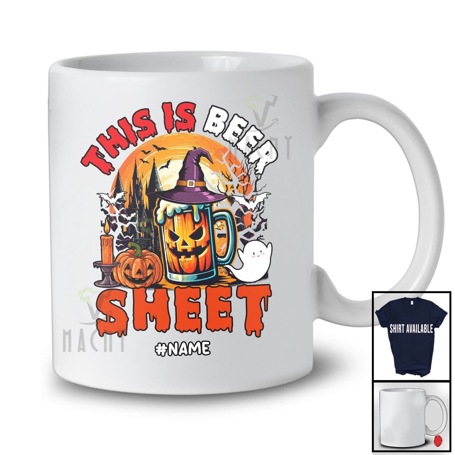 The Personalized This Is Beer Sheet; Scary Halloween Custom Name Witch Beer Drinking Moon T-Shirt destined to impress, and priced at only $12.95, for a limited time.