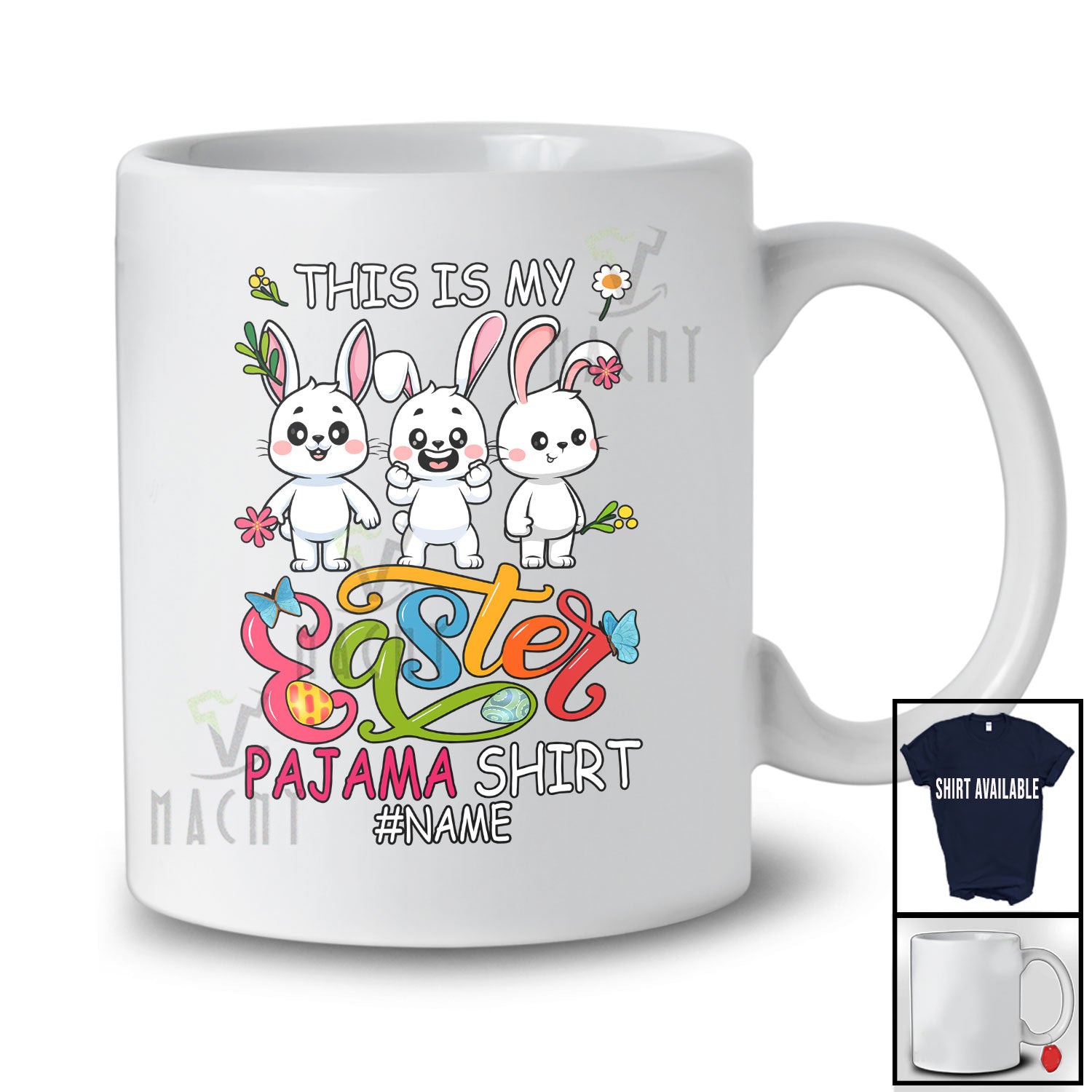 Personalized This Is My Easter Pajama Shirt; Lovely Custom Name Bunny Eggs Bunnies; Family T-Shirt. This cotton t-shirt is a durable staple product with a classic fit. One of the most popular items, it has a relaxed style made for everyday and casual wear.