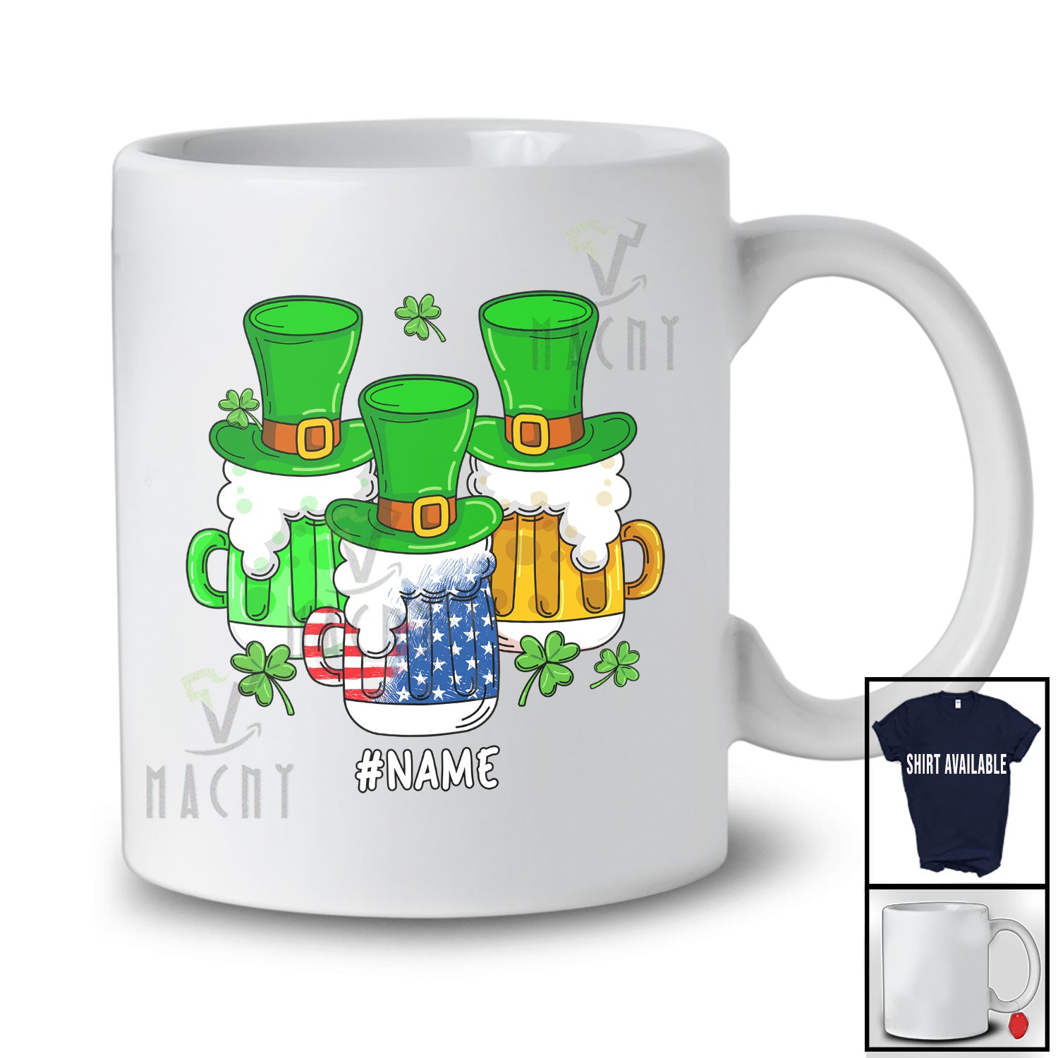 new MacnyStore - Personalized Three Glasses of Beer; Amazing St. Patrick's Day US Flag; Custom Name Drinking T-Shirt – Macnystore