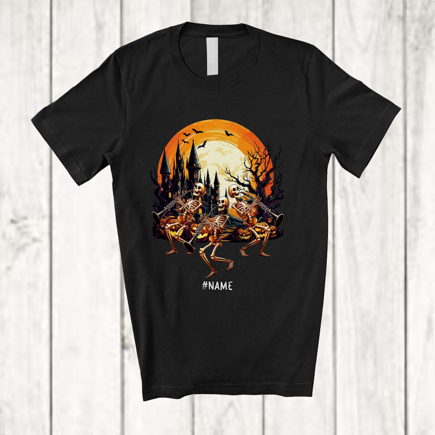 Personalized Three Skeletons Playing Bassoon; Joyful Halloween Custom Name Musician; Family T-Shirt