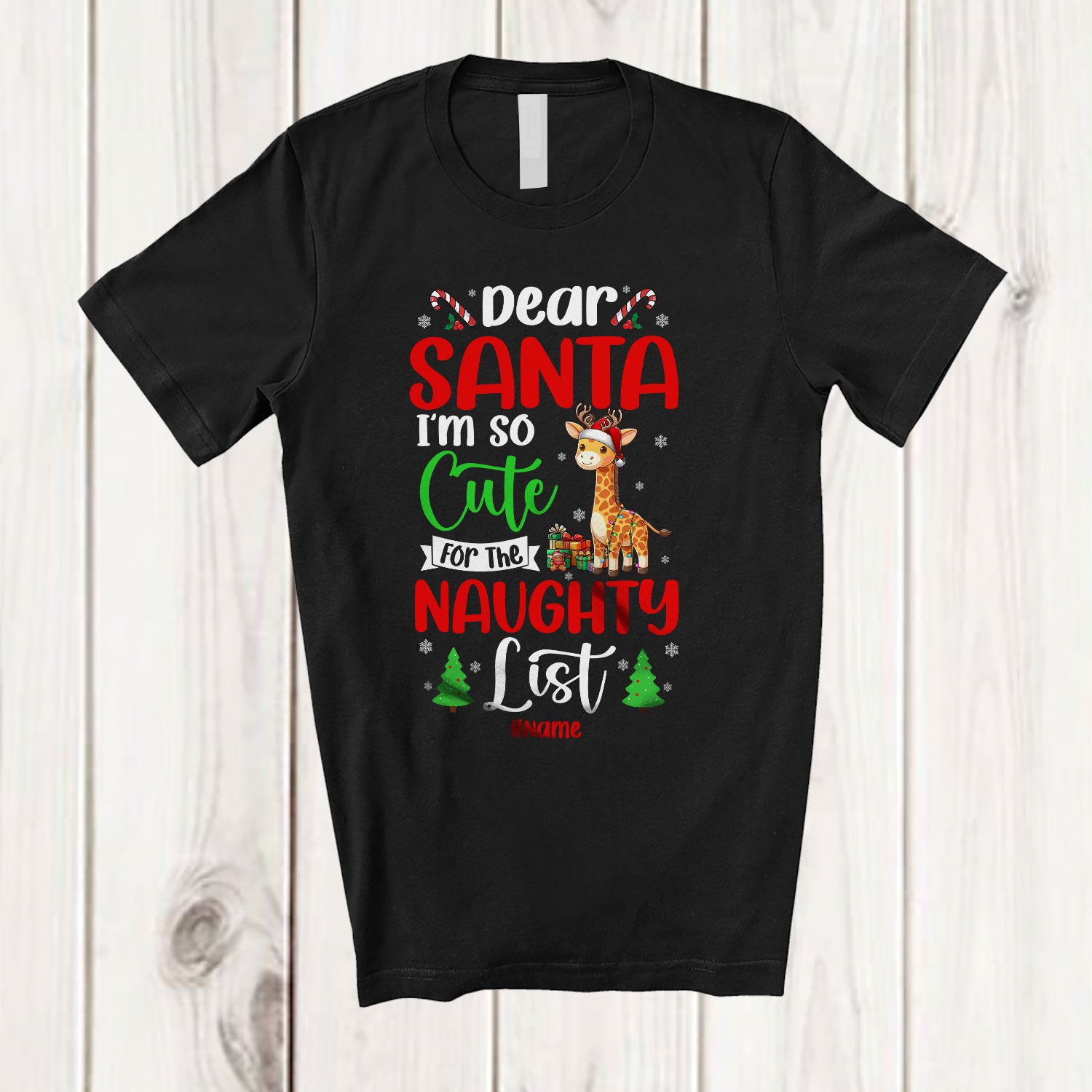 Personalized Too Cute For Santa's Naughty List; Amusing Christmas Custom Name Giraffe T-Shirt