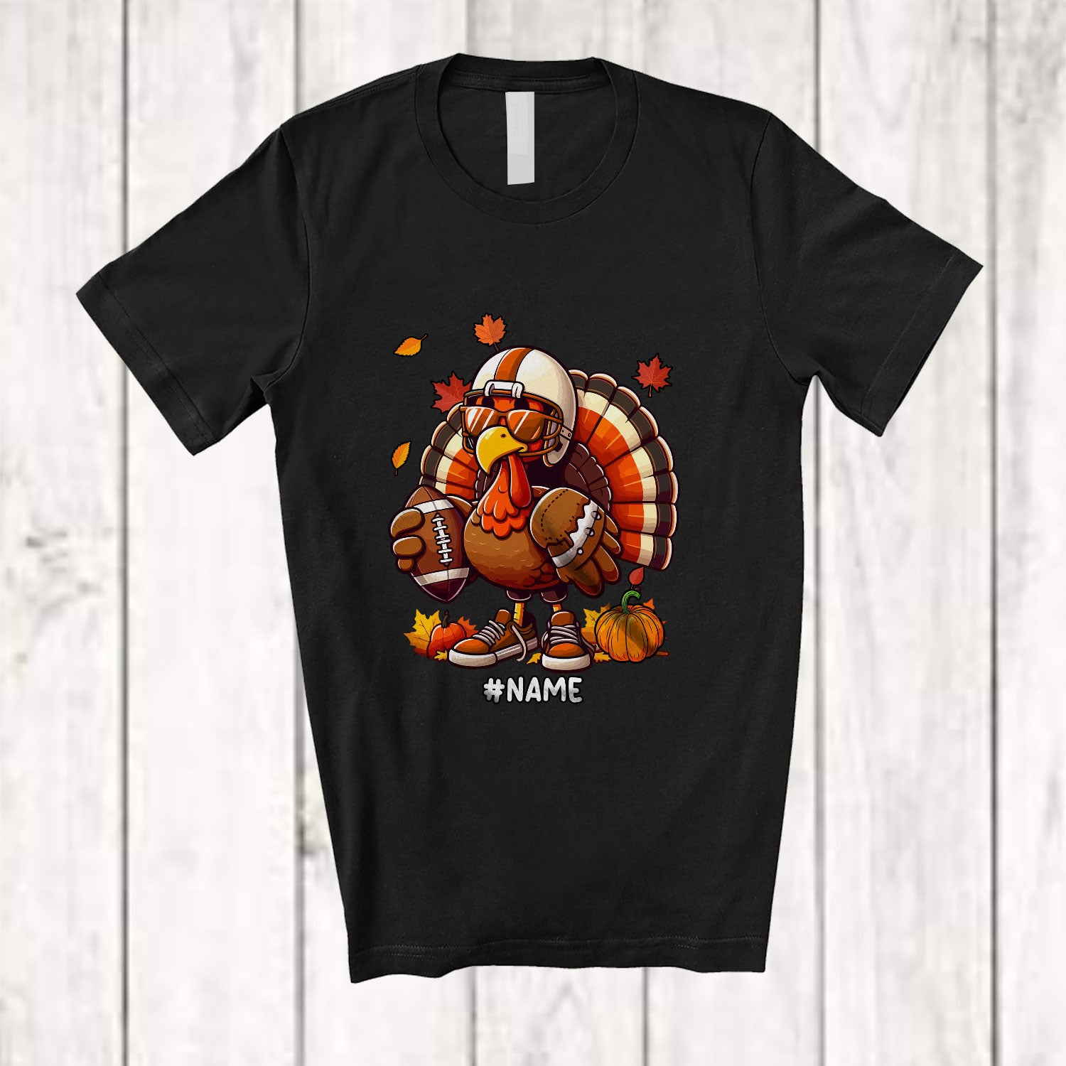 Personalized Turkey Playing Football; Amusing Thanksgiving Custom Name Sport Player Team T-Shirt