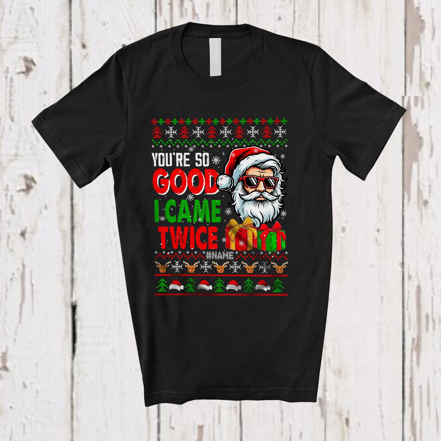 • Personalized You're So Good I Came Twice; Amusing Christmas Sweater Custom Name Bearded Santa T-Shirt. This cotton t-shirt is a durable staple product with a classic fit. One of the most popular items, it has a relaxed style made for everyday and casual wear.