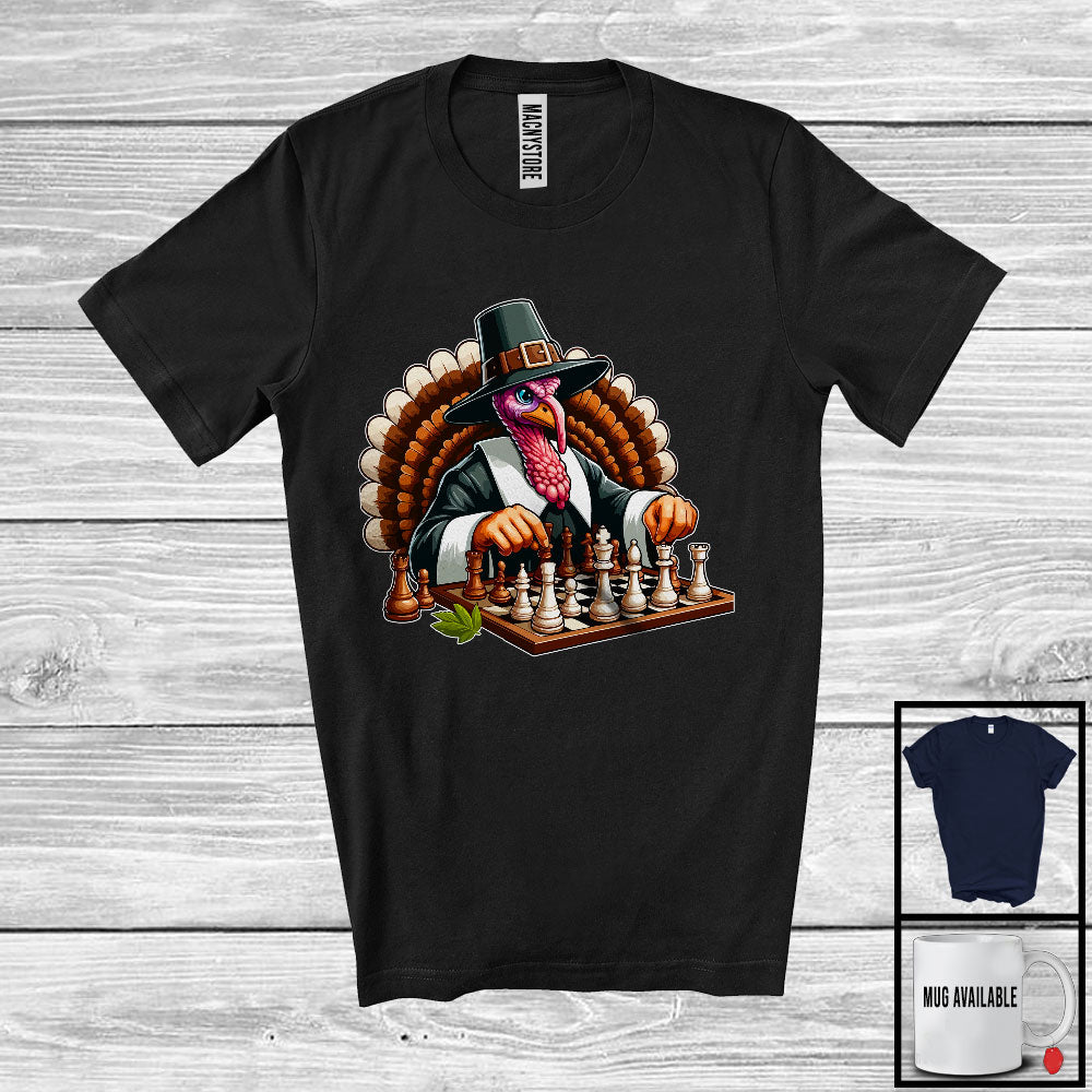 Pilgrim Turkey Playing Chess, Humorous Thanksgiving Turkey Lover, Sport Player Playing Team T-Shirt
