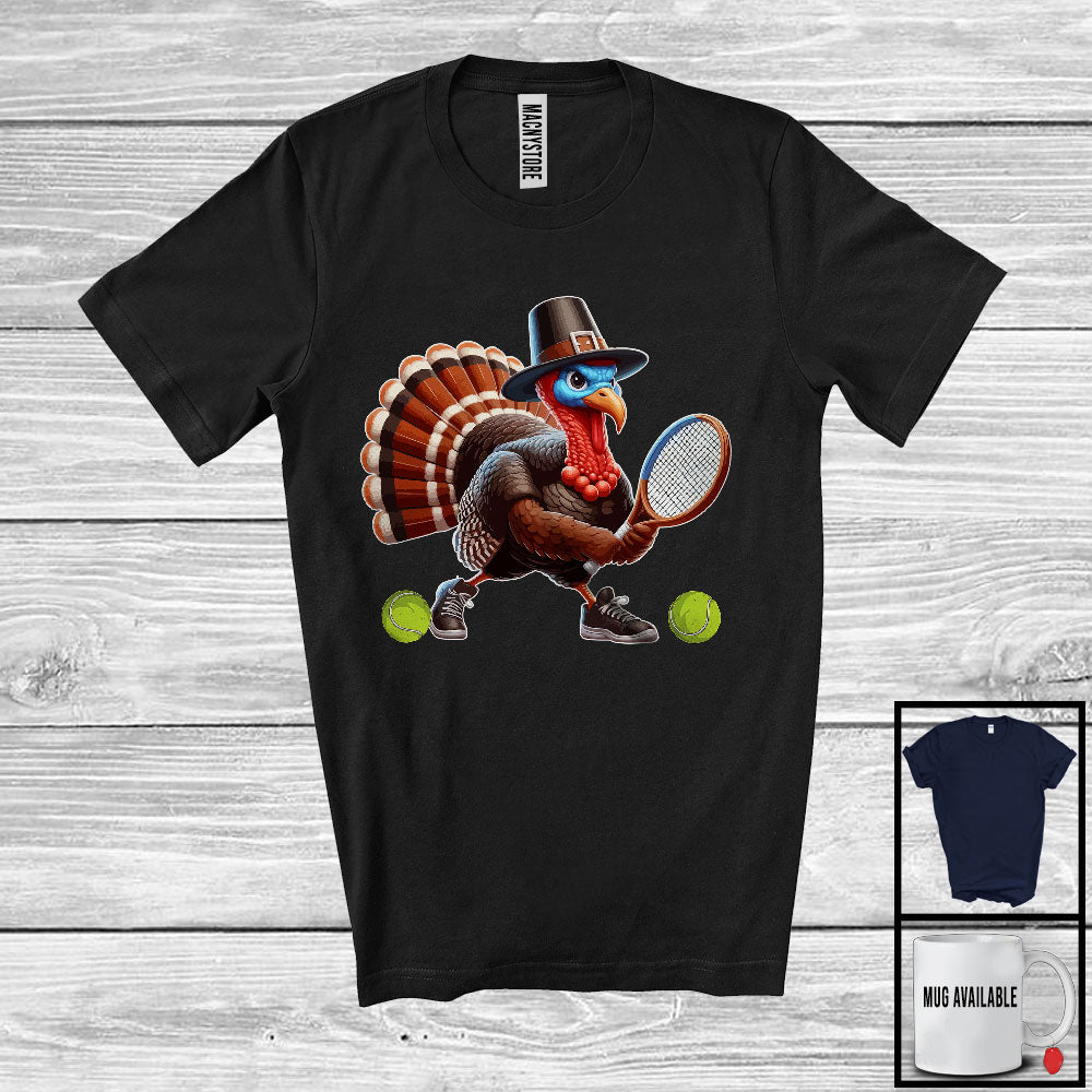 Pilgrim Turkey Playing Tennis, Humorous Thanksgiving Turkey Lover, Sport Player Playing Team T-Shirt
