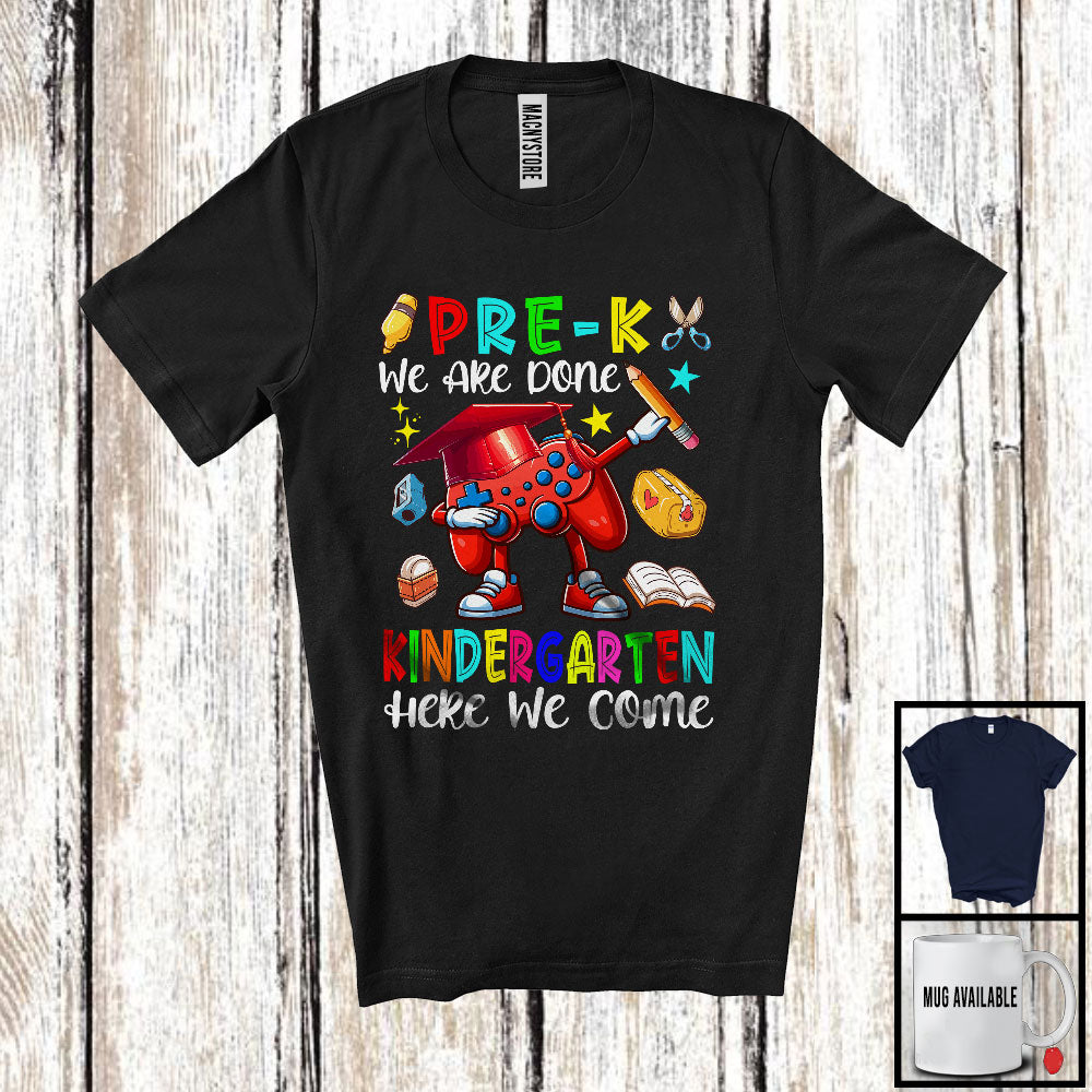 Pre-K We Are Done Kindergarten Here We Come, Adorable Last First Day School Gamer Dabbing T-Shirt