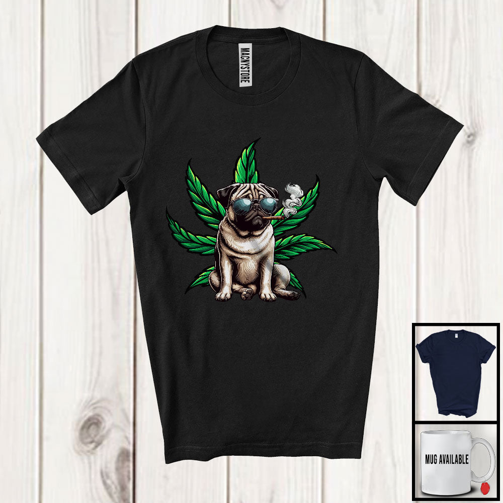 Pug Sunglasses Smoker, Humorous Puppy Owner Lover, Matching 420 Stoner Smoker Group T-Shirt