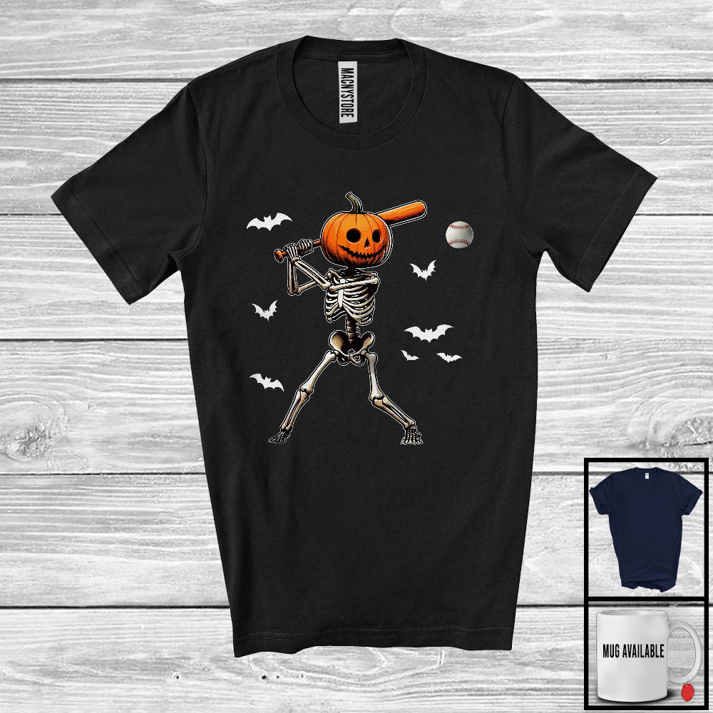 new MacnyStore - Pumpkin Skeleton Playing Baseball, Scary Halloween Baseball Player Playing Lover, Sport Team T-Shirt – Macnystore