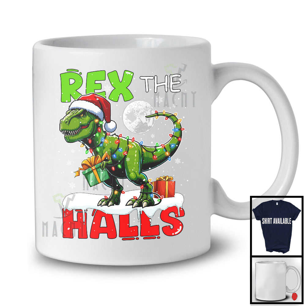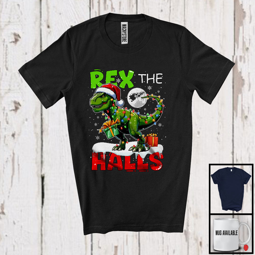 Rex The Halls; Fantastic Christmas Lights Plaid Santa T-Rex Dinosaur; X-mas Moon Snow T-Shirt. This cotton t-shirt is a durable staple product with a classic fit. One of the most popular items, it has a relaxed style made for everyday and casual wear.