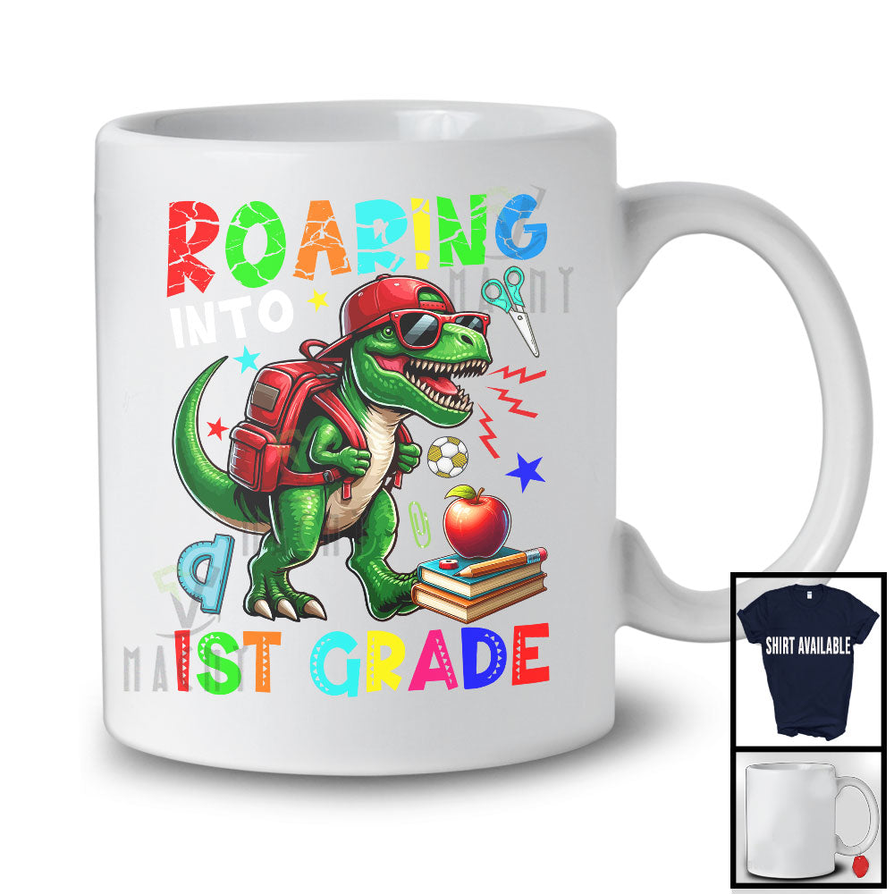 Roaring Into 1st Grade, Humorous First Day Of School Dinosaur T-Rex Sunglasses, Student Teacher T-Shirt