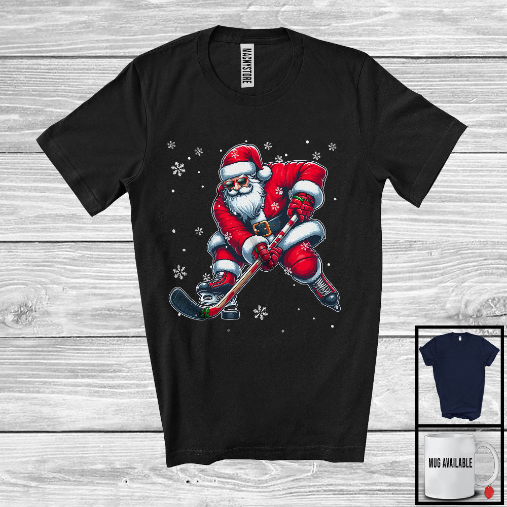 Santa Playing Hockey, Humorous Christmas Santa Sport Player Team, Family X-mas Group T-Shirt