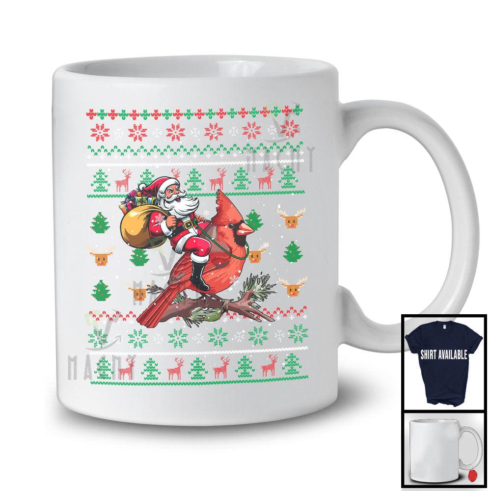 Santa Riding Cardinal Bird; Amazing Christmas Sweater Bird Lover; X-mas Lights Animal T-Shirt